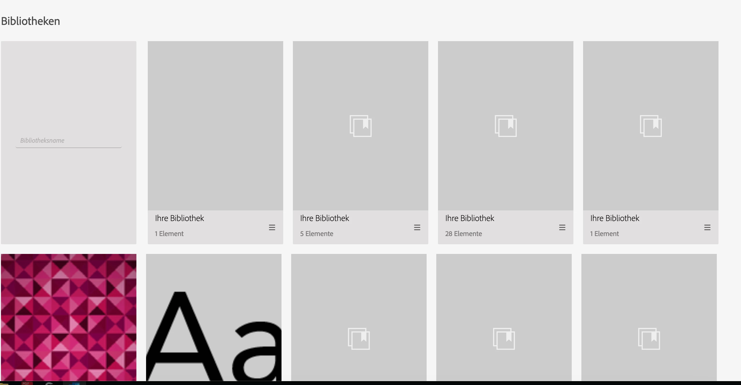 The libraries that don't show a thumbnail don't have any stock assets in them. If you open these libraries you'll likely see something like when viewed on the Adobe Stock website. You can see all library contents when you view them on https://assets.adobe.com/libraries or from within a Creative Cloud product. On the Stock site you'll only be able to see what Adobe Stock assets are in your libraries.