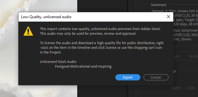 Hi, I just downloaded 10 free audio materials (promotion) from adobe stock. I put one on the timeline of Adobe premiere pro. During compilation, the program informs me that it is demo material and there is no license. Can I legally use this audio material in my material or not?