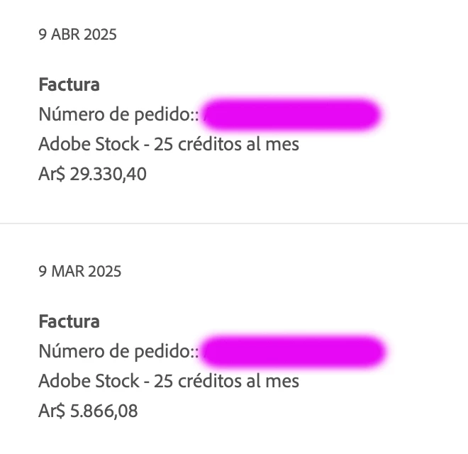 Me aumentaron sin previo aviso el Adobe Stock de 5.866,08 a 29.330,40.