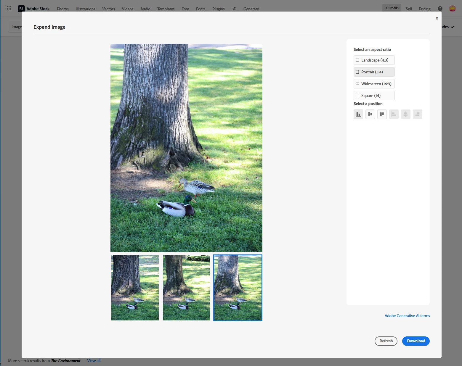 It will then show your generative AI images and some related stock images. You can further adjust your generative AI results by selecting an aspect ratio, content type, or styles as shown below.