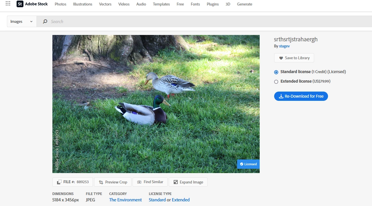 Clicking on an asset opens a details page where you can see a larger version of the image and can download it