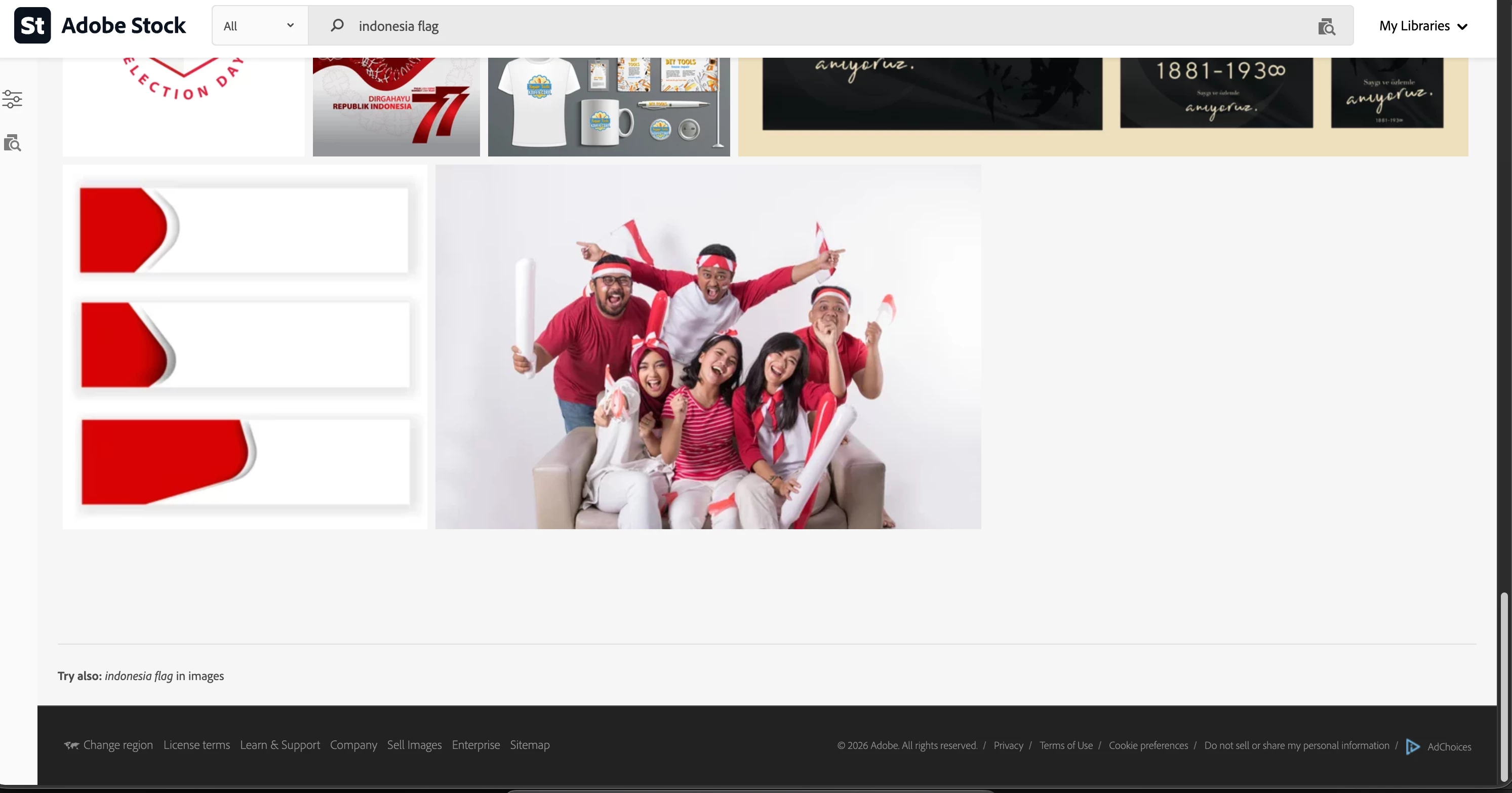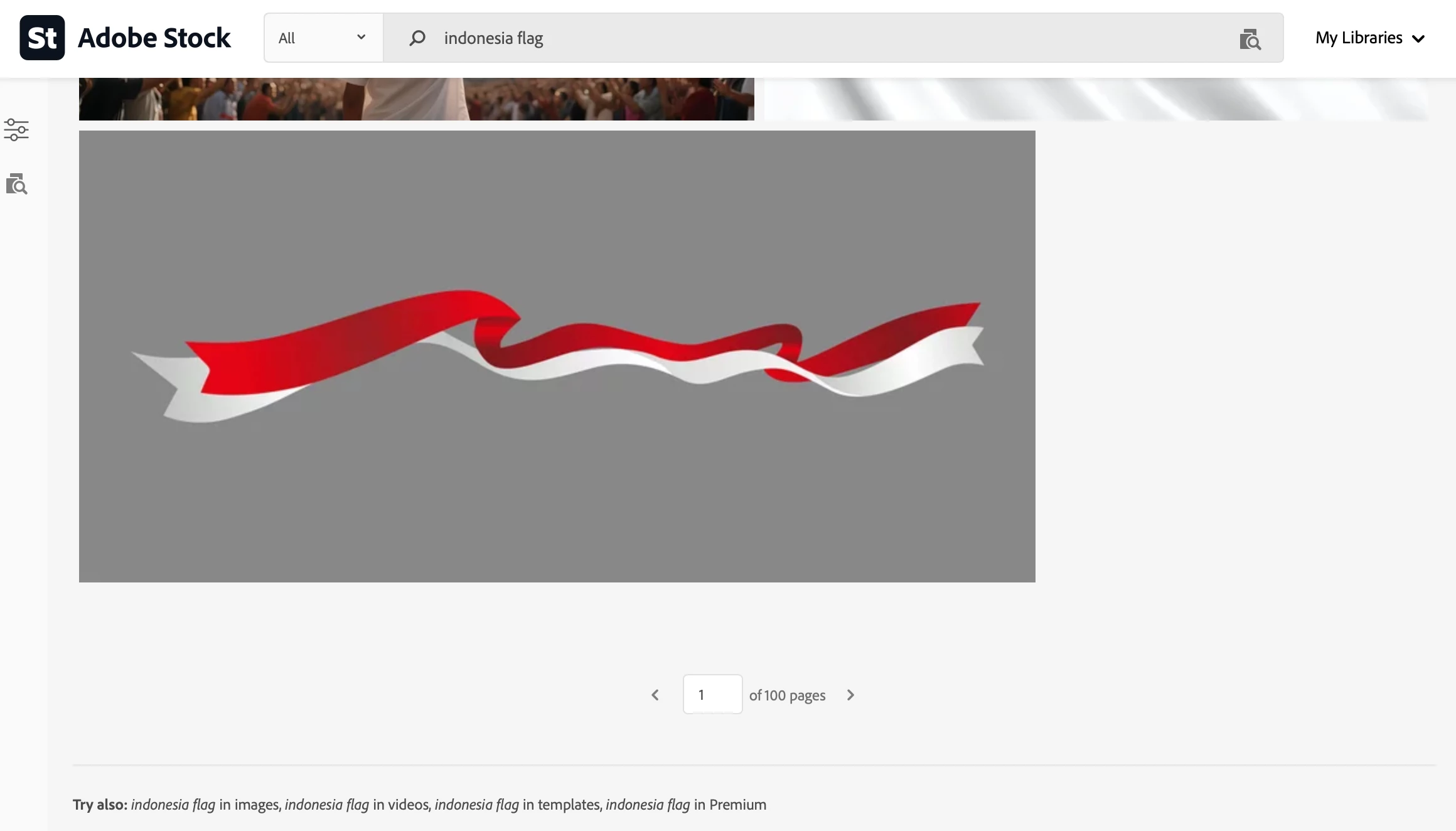 I have an old account. When I search for "Indonesia flag," it displays many options, displaying 1 of 100 pages.