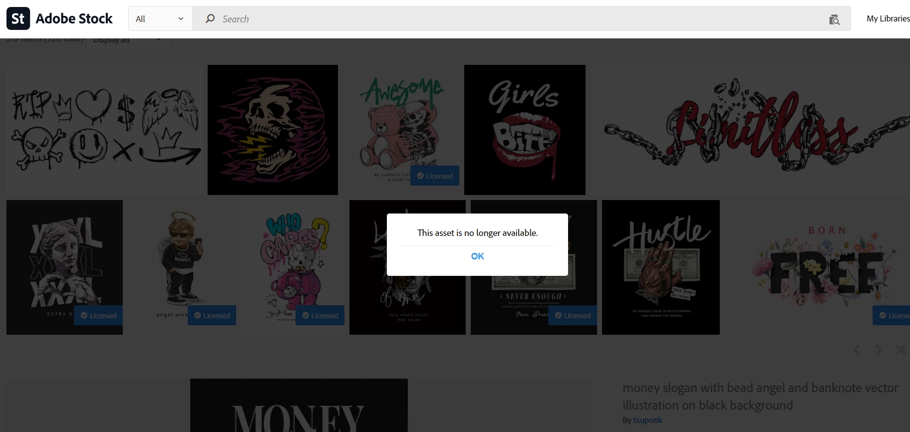 I have 23 assets like this that are unavailable. I have never used them. I asked chat for credit for these assets and they just left me sitting for 20 minutes with no reply. How can I get my credits back? This is ~$50 worth of product and two months of planning down the drain. I don't see any point in continuing this service if I cannot use the assets.