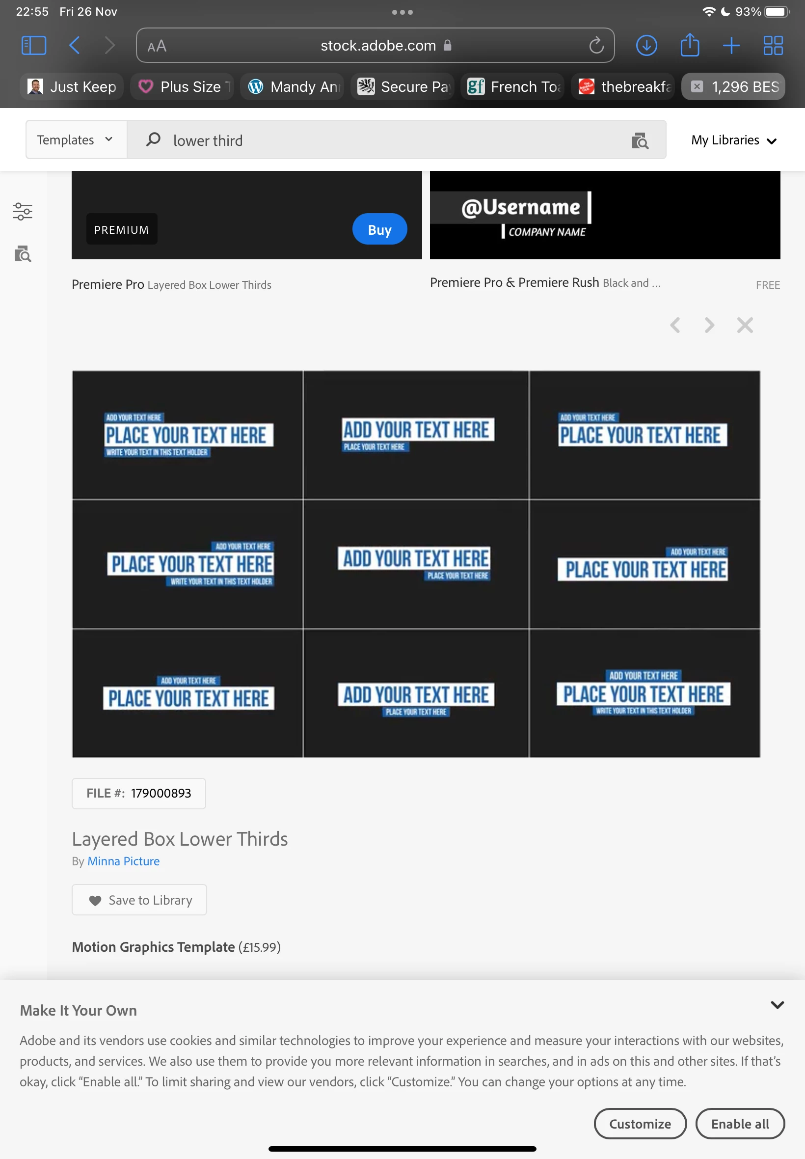 I am interested in purchasing a lower thirds pack (file no. 179000893) from Adobe Stock to use in the webinar edits. I know the cost is £15.99 (GBP) but is this a one-off payment, a monthly payment or a yearly payment?
