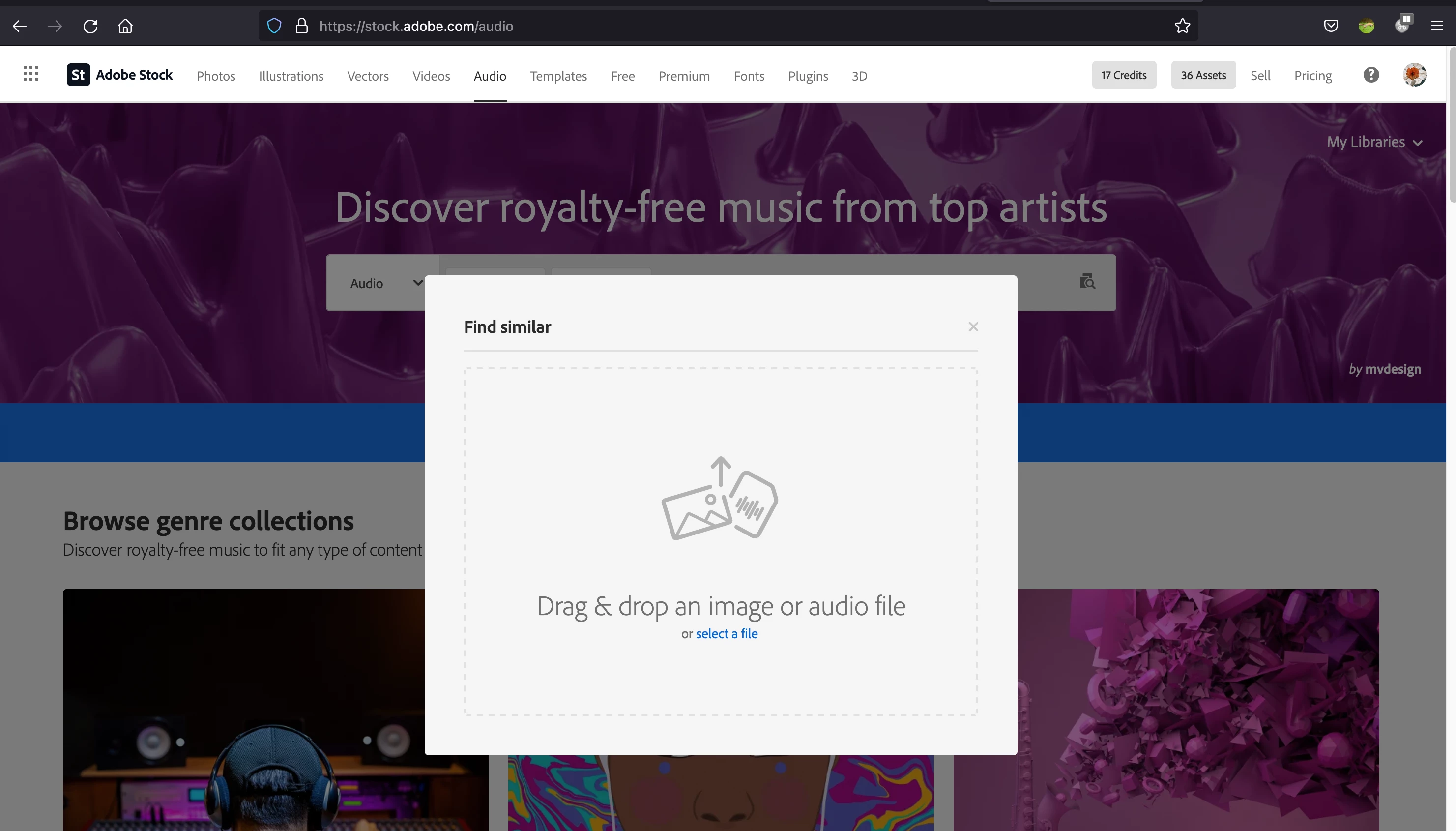 In Stock, I can drag in a photo and it will come up with a 'best match'
