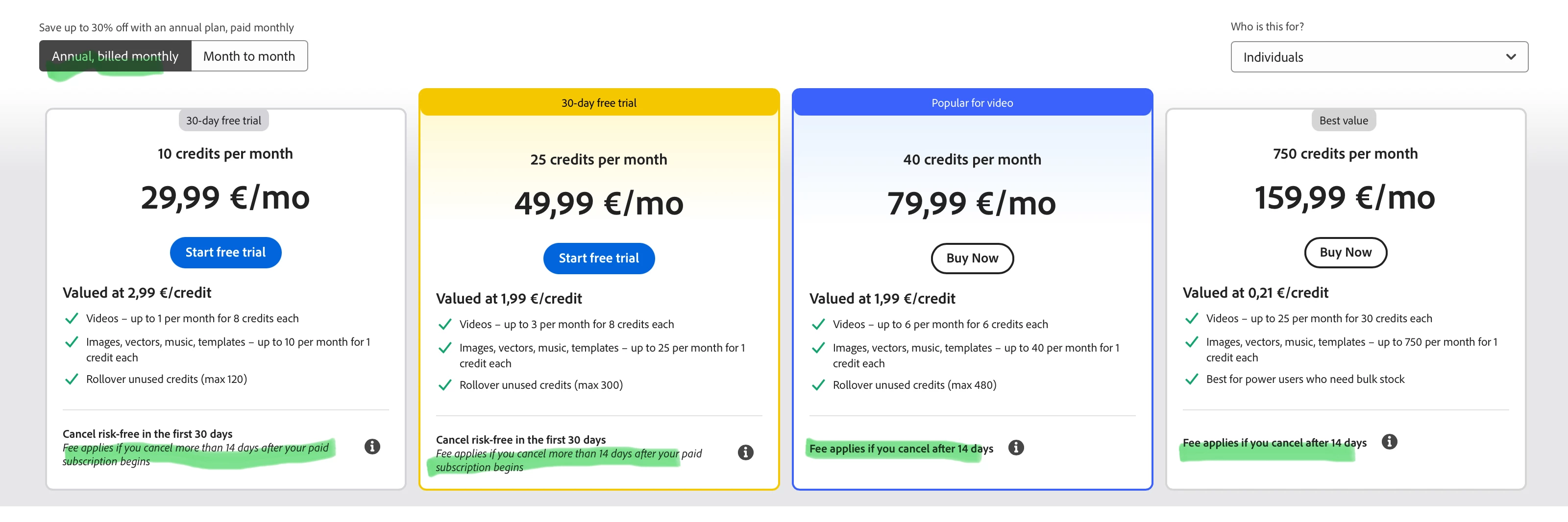 I would like to know why i need to pay 149 dollars in order to cancel a plan that I chose to pay on a month by month basis. I dont understand how an early cancellation fee would apply to a month by month plan and not an annual basis. Ive downloaded probably 5 images and dont wish to use this service anymore. I certaintly do not plan on paying 150 dollars on top of the 60 that ive been charged for 2 months for 5 images. I feel like this way of charging people this much money just to cancel a subscription is a scam and entrapment.