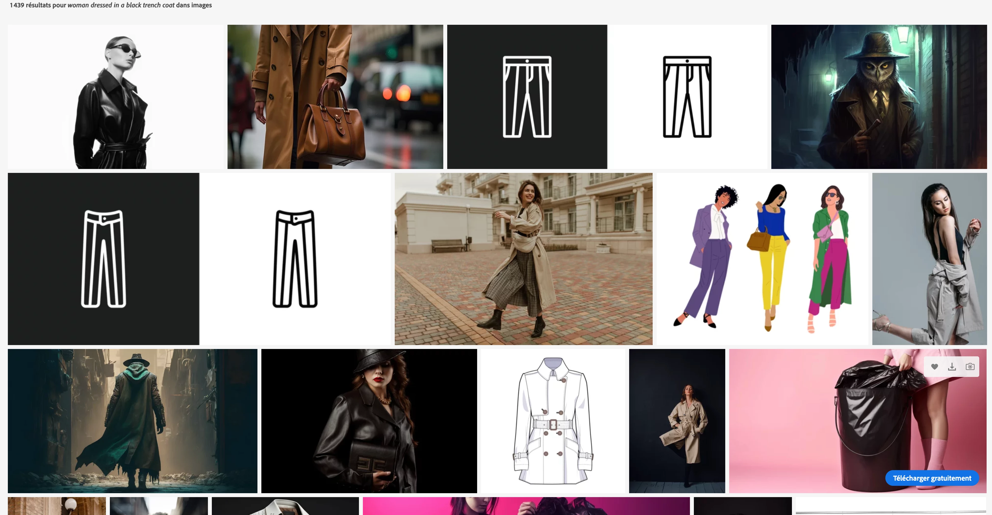 A simple serach for " woman dressed in black overcoat" will find on the first page 70% photos in BEIGE overcoats ans a lot of irelevant images.. notice the rat dressed with a trench coat ..