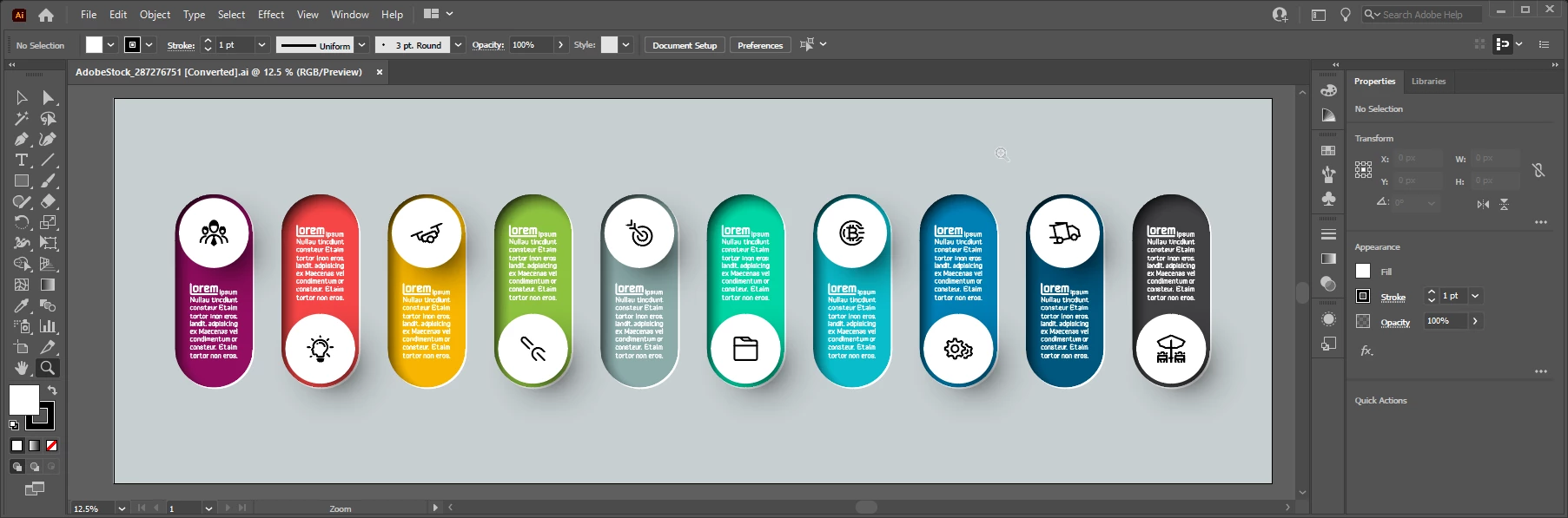 I licensed an AI infographic file that I thought looked great but opening it in the latest version of AI on MacPro the graphic looks horrible. I can't tell if it's something I have done? I have attached 2 images: one which is what it should look like from the stock page then a screenshot of what I get.