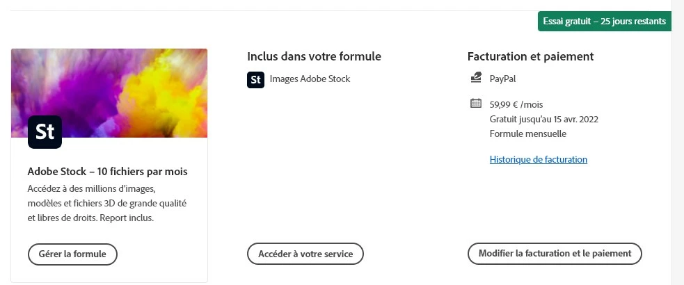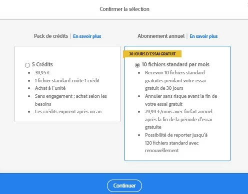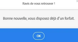 When clicking "download", a first popup opens to select either a one-shot payment for 5 credits, or 10 per month. Then, after I choose the second option, another popup opens telling "good news, you already have credit" ("Vous avez déjà un forfait" in french). Then after clicking OK, nothing happens, the 2nd popup gets closed, the image-finding page is still visible in the web browser, and nothing has been downloaded, neither in "Download" directory, nor accessible from AI. Same situation as at beginning. Im in a infinite clicking loop.