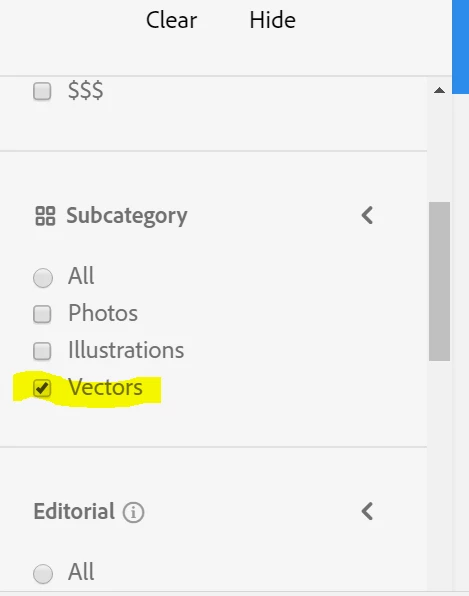 You may search vectors only in Adobe Stock. When you search for an image, click the "Filters" button which will appear in the side panel. Select the box saying "vectors" and you can find the specific vector that you want by typing the appropriate keywords. You may also see the screenshot below: