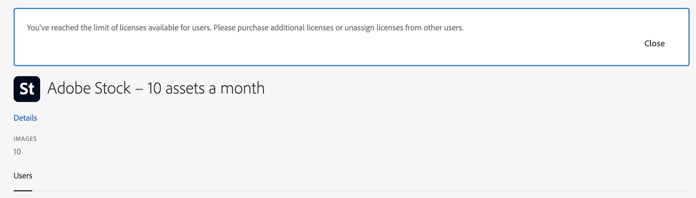 I purchased an Adobe Stock team subscription, but I have 'reached the limit' for available users, but the advertising said "Unlimited users — share a subscription with your entire team to access standard assets"