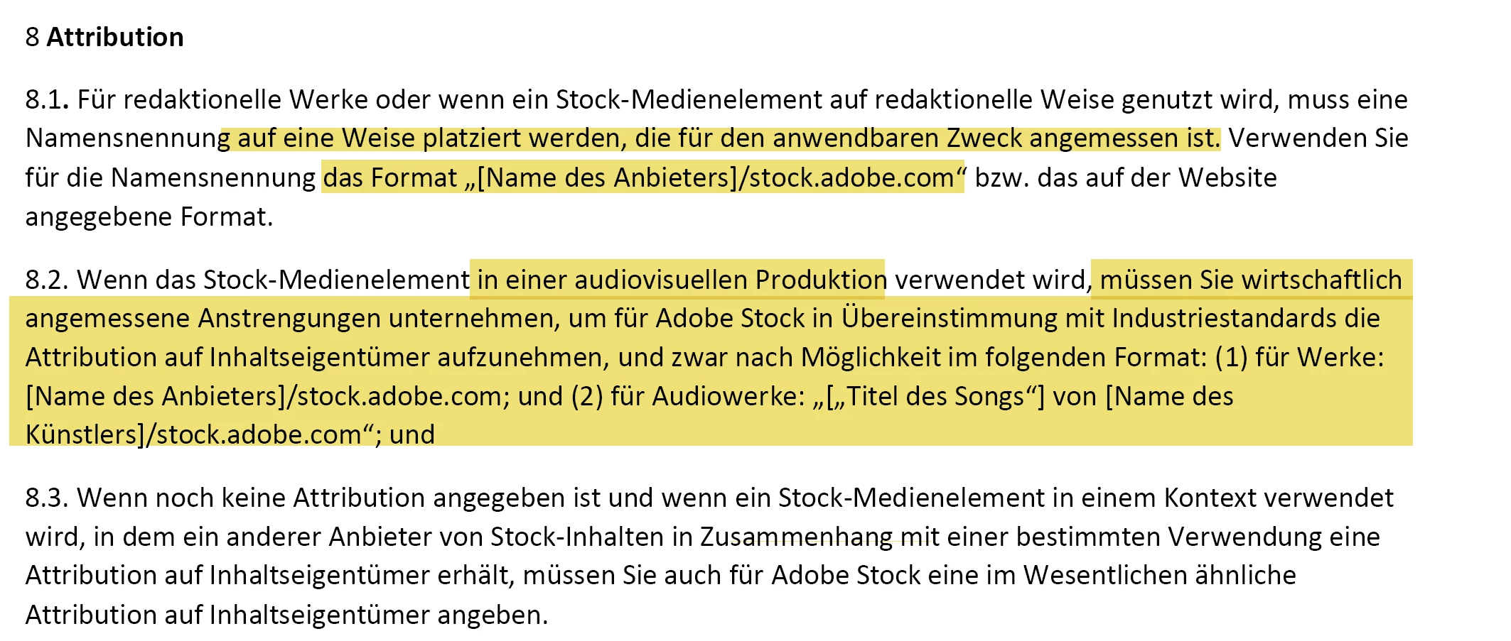 wir beabsichtigen Audios und Videos von Adobe in unsere Social-Media-Videos auf Facebook, Instagram, LinkedIn und YouTube einzubinden. Die Nutzung ist redaktionell. Wie und wo müssen die Urheber gekennzeichnet werden? Müssen sie überhaupt gekennzeichnet werden?