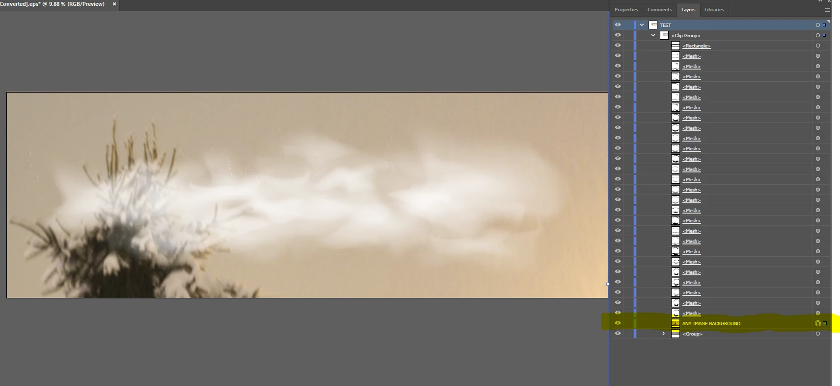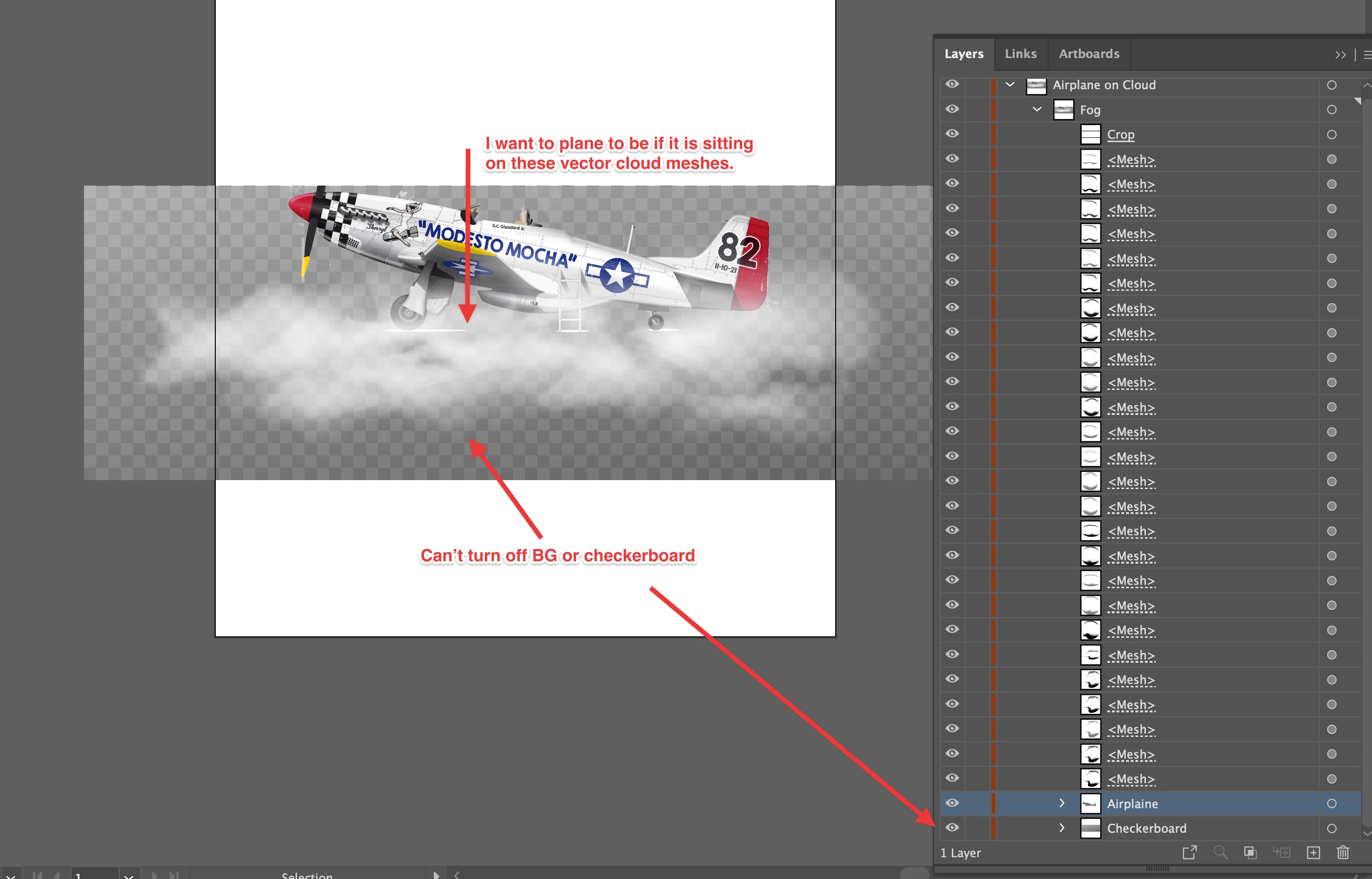 I licensed a transpartent vector file from Adobe Stock, but I can't turn off the background or checkerboard background. Other threads suggest "hiding" the checkerboard and background off in the layer pallete, but it messes up the clouds when hidden.