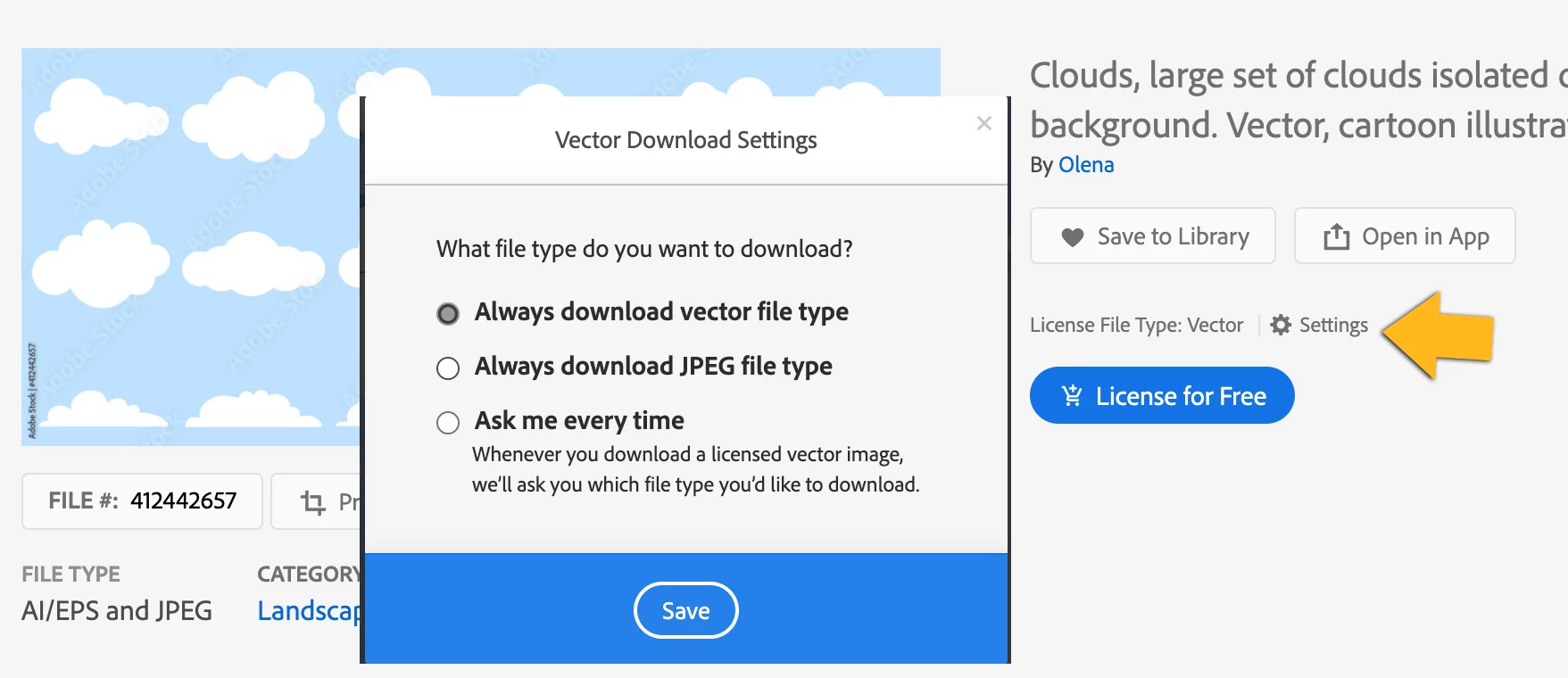 What can I do when all vector pics/drawing from Adobe Stock download as JPGs? I want to use the vector-version and cannot find any setting to fix this...
