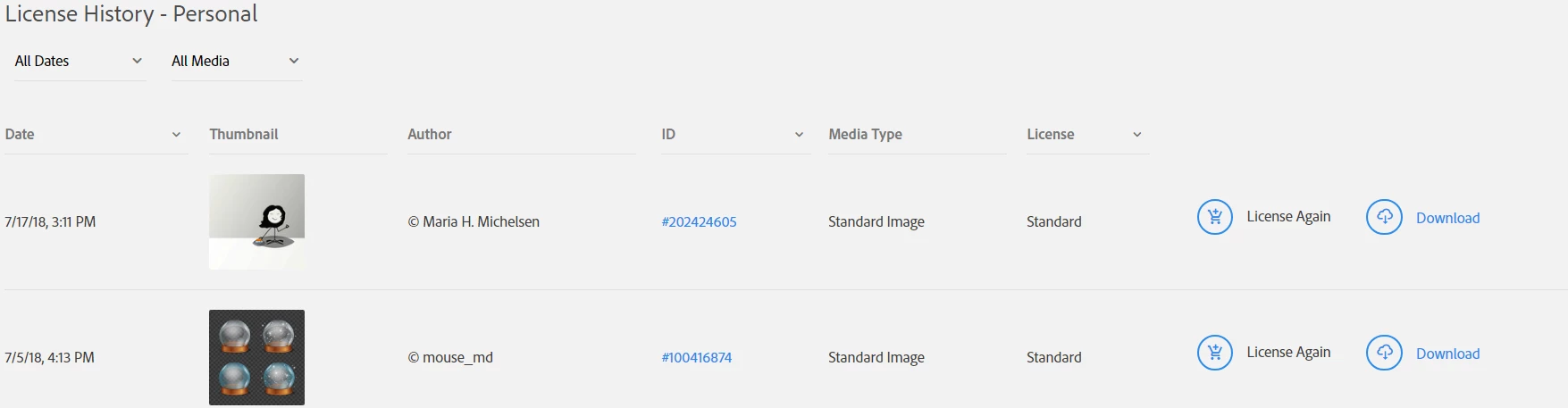 The downloaded images can be viewed in the license history. Please follow the steps as mentioned below: