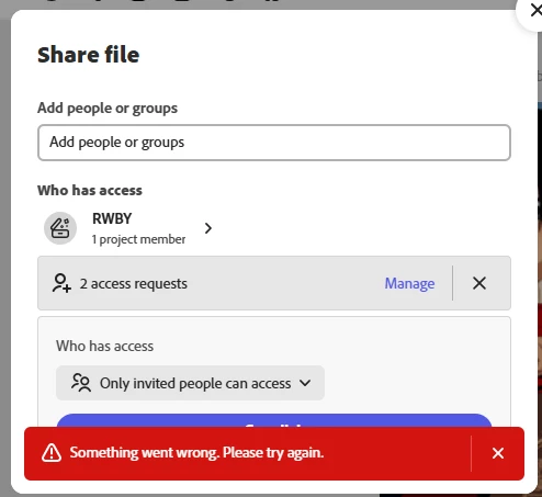 Also, try clearing the browser's cache and cookies, and restarting the browser and try again. For more information on how to clear cache and cookies check this link- https://adobe.ly/4a5ipUF and how to use incognito mode- https://adobe.ly/4a2UzZV