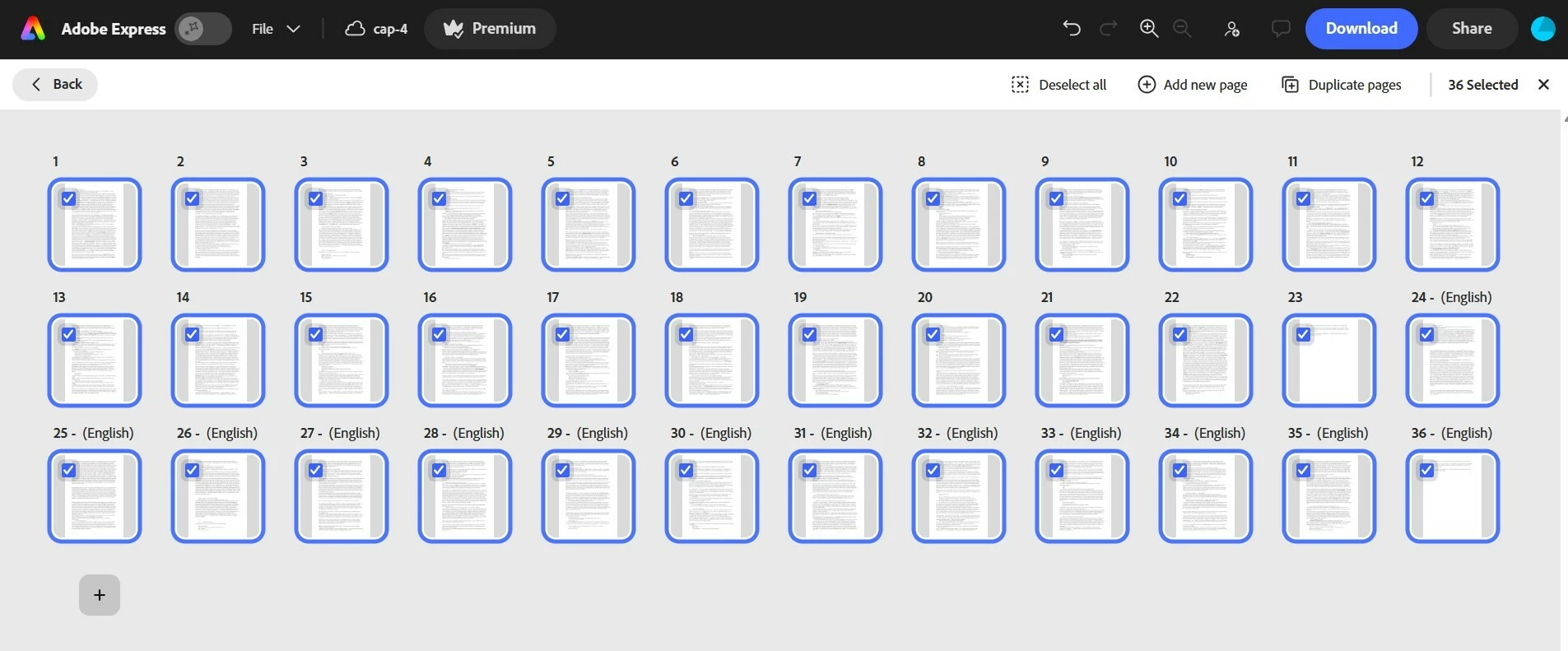 The PDF has 23 pages. I ask to translate to English (from Portuguese), this is what it shows me: ALL the 23 pages in Portuguese (which I do not need) + only the first 2 pages in English.