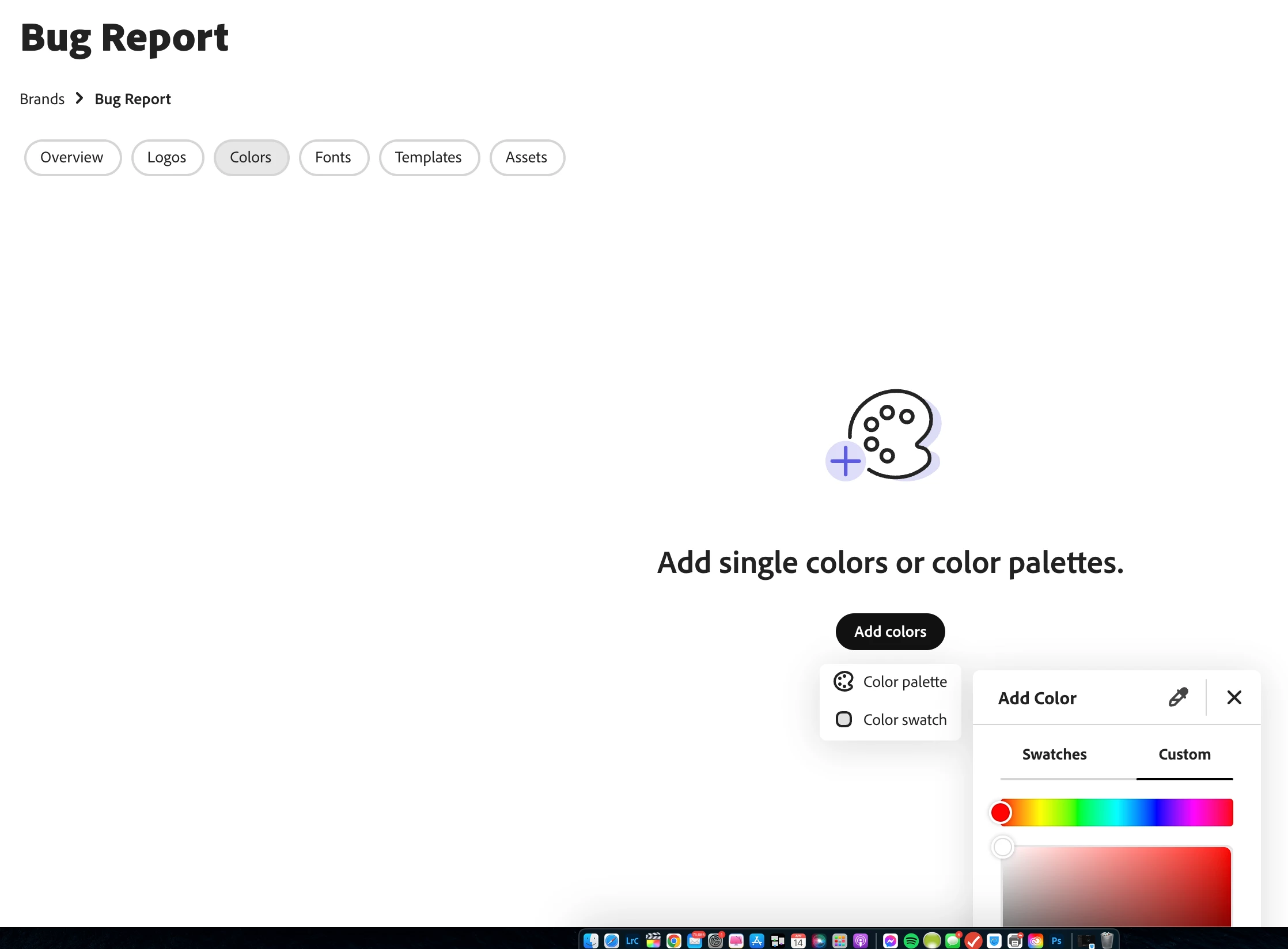 When you choose to add color to a brand, the button to add color opens a modal, but much of it is below the fold and no way to scroll. Can't select the opacity or enter the hex without taking the browser and zooming out to less than 100%. This is using google chrome on a 17 inch monitor with high resolution. Only happens when adding a new brand and the add color is at the very bottom of the screen. Once the brand is created, the modals appear in other places.