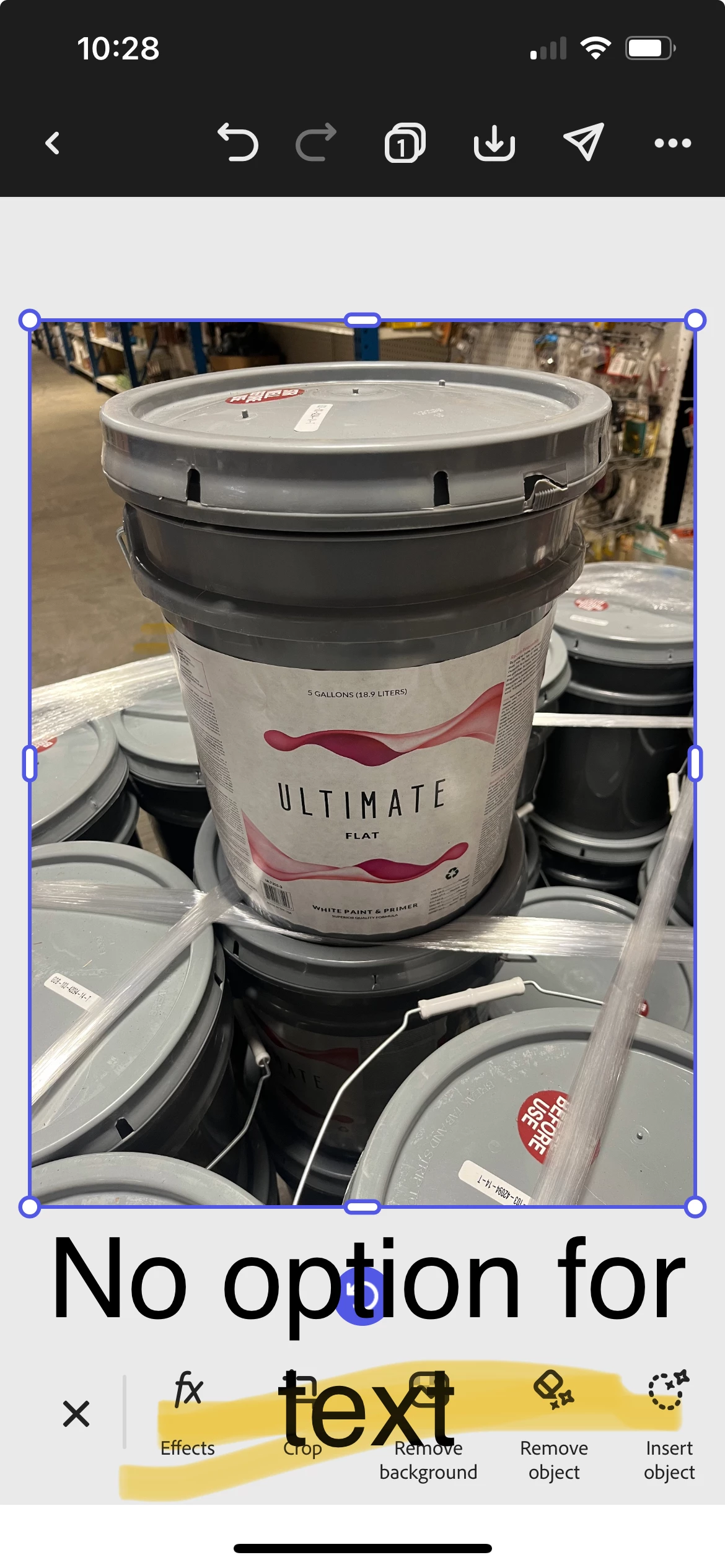 Looks like you have the image selected, so it is only showing you image editing options. If you deselect the image by tapping somewhere in the gray border area, you should see other tools, including the + button that you can use to add text. Please see https://community.adobe.com/t5/adobe-express-discussions/introducing-the-all-new-adobe-express-mobile-app/m-p/14588137#M16119