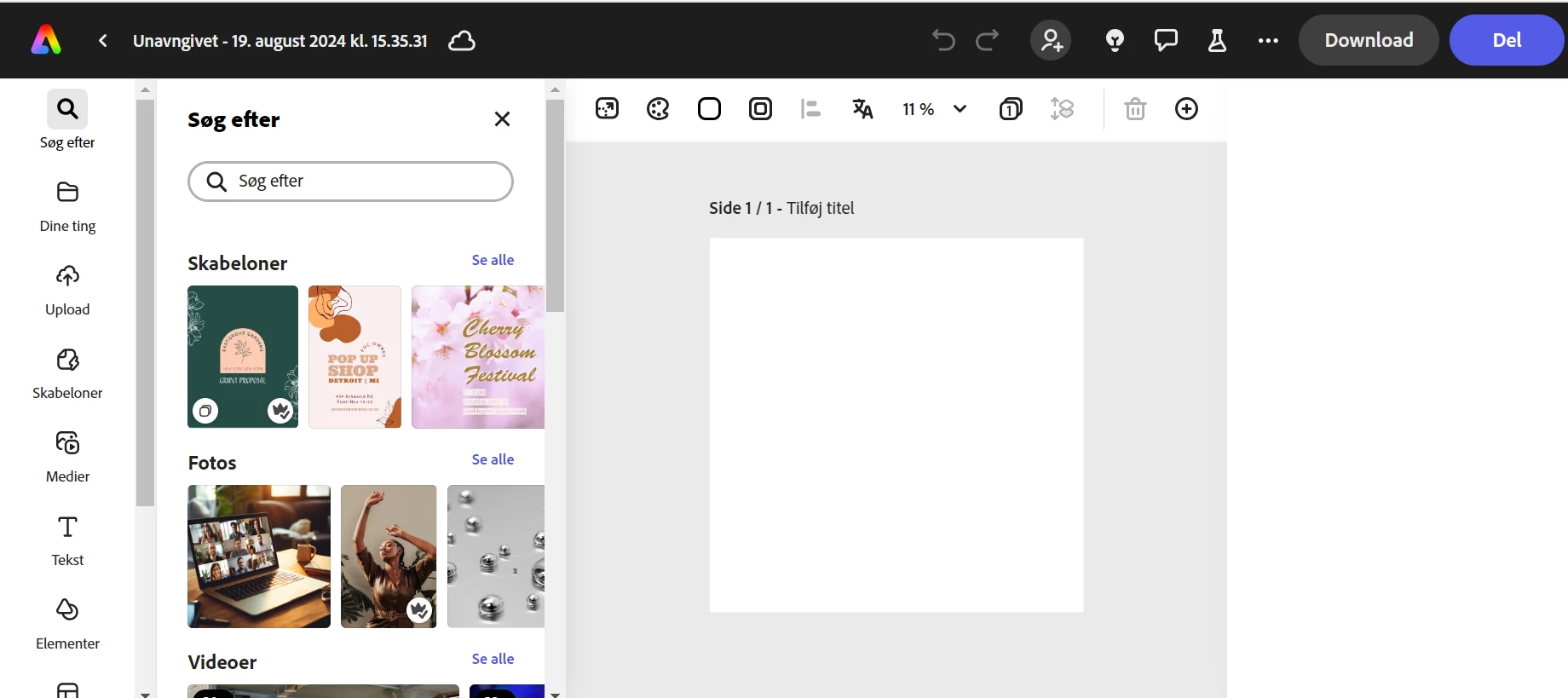 Adobe express sidebar on the right is blank