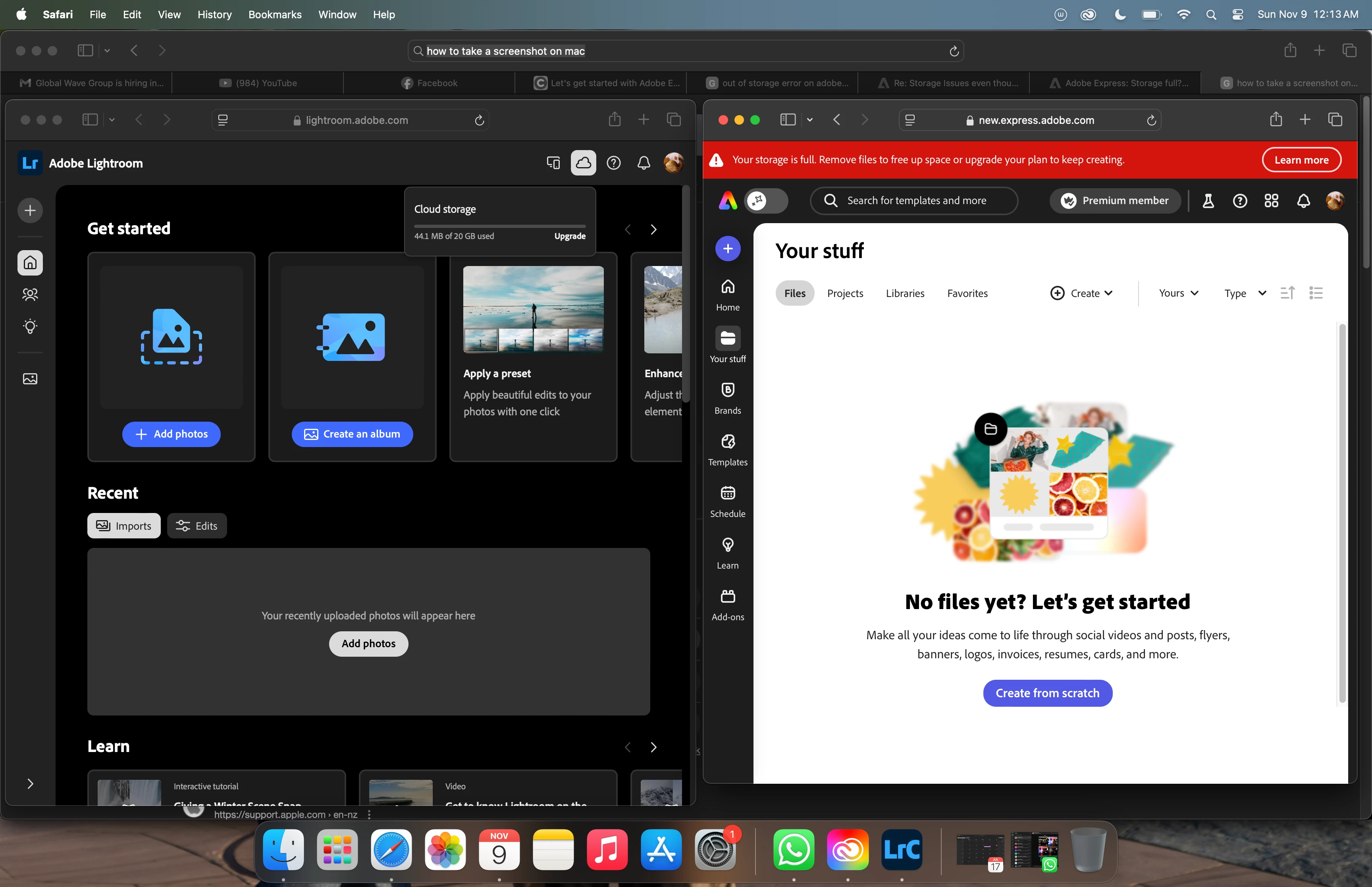 Im doing a course for Adobe - which requires me to do a creative exercise in Adobe Express. First time ive used it, and its already giving me an error of storage full.. and asking me to upgrade.. however, the storage on my Creative Cloud is just 44.1 MB... any work arounds for this? ve searched other discussions about it and deleted everything in my CC.. using it on macos