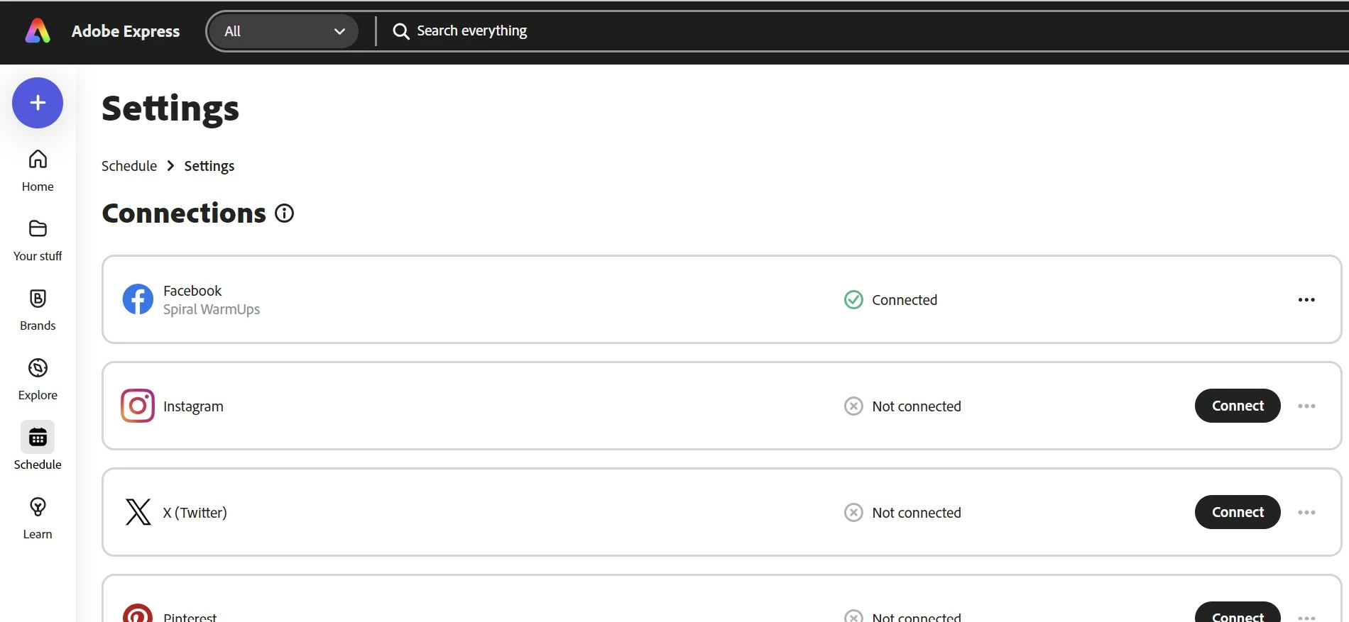 Adobe Express - Unable to Connect More Than One Facebook Page