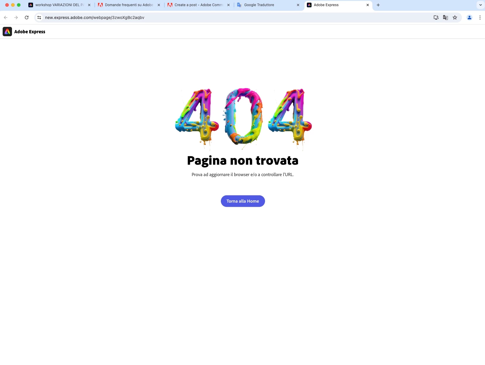 adobe express web page dont work