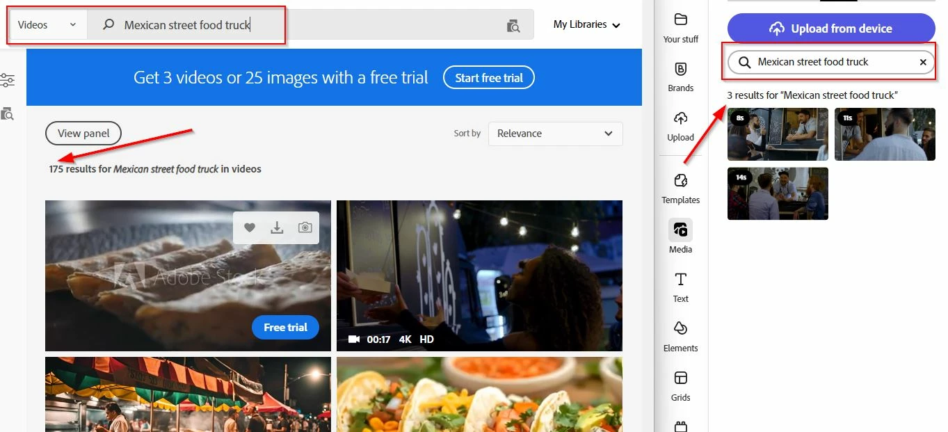 In fact I searched both libraries for the term "Mexican street food van" and on the adobe stock library website there were 175 found and through Adobe Express only 3 were found?? - See attached image