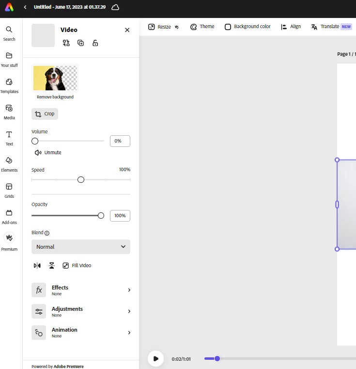 However, if your intention is to solely remove the audio from a video clip, feel free to submit a feature request here: https://adobeexpress.uservoice.com/forums/951181-adobe-express