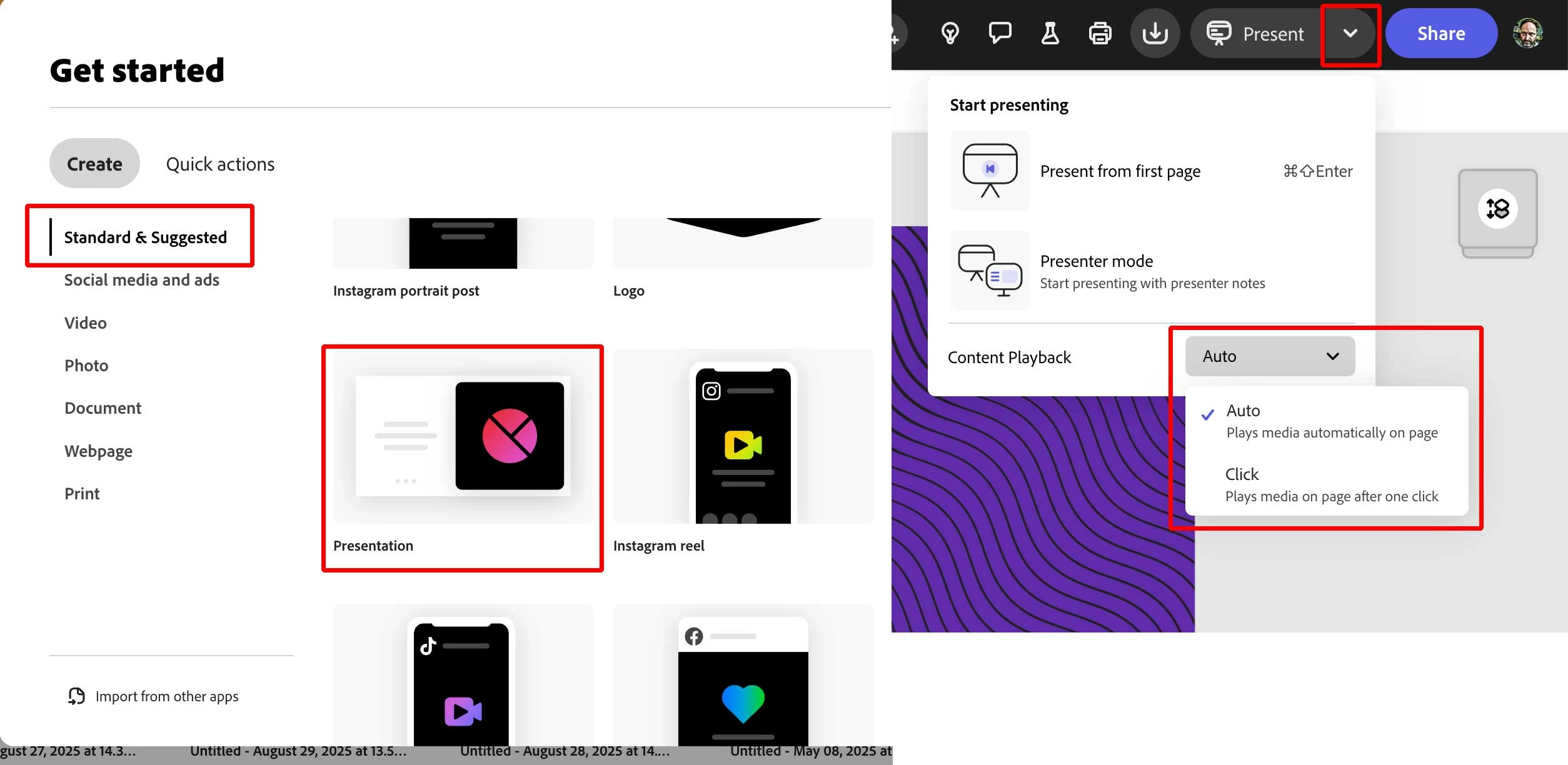 I have a portfolio I am working on and I'm wondering if there is 1) a way to control if a video plays on click or not, or 2) a way to insert hyperlinks into a presentation (like a button that someone can use to view a video or not.)