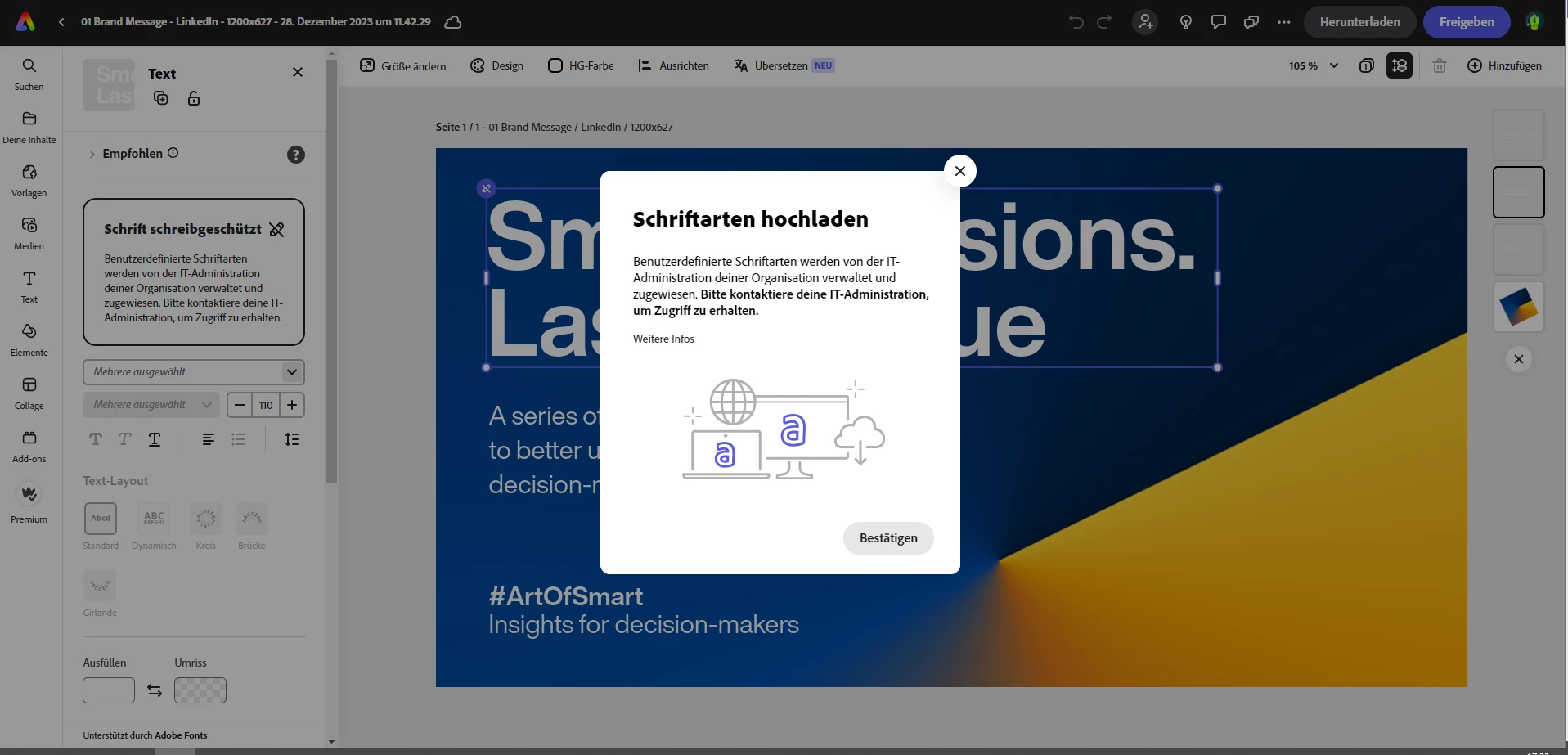 is it true that one cannot add an extra font to adobe express if its the Adobe Express Licence only? IT tells me it's not possible because of the licence, not because of any other admin restrictions.