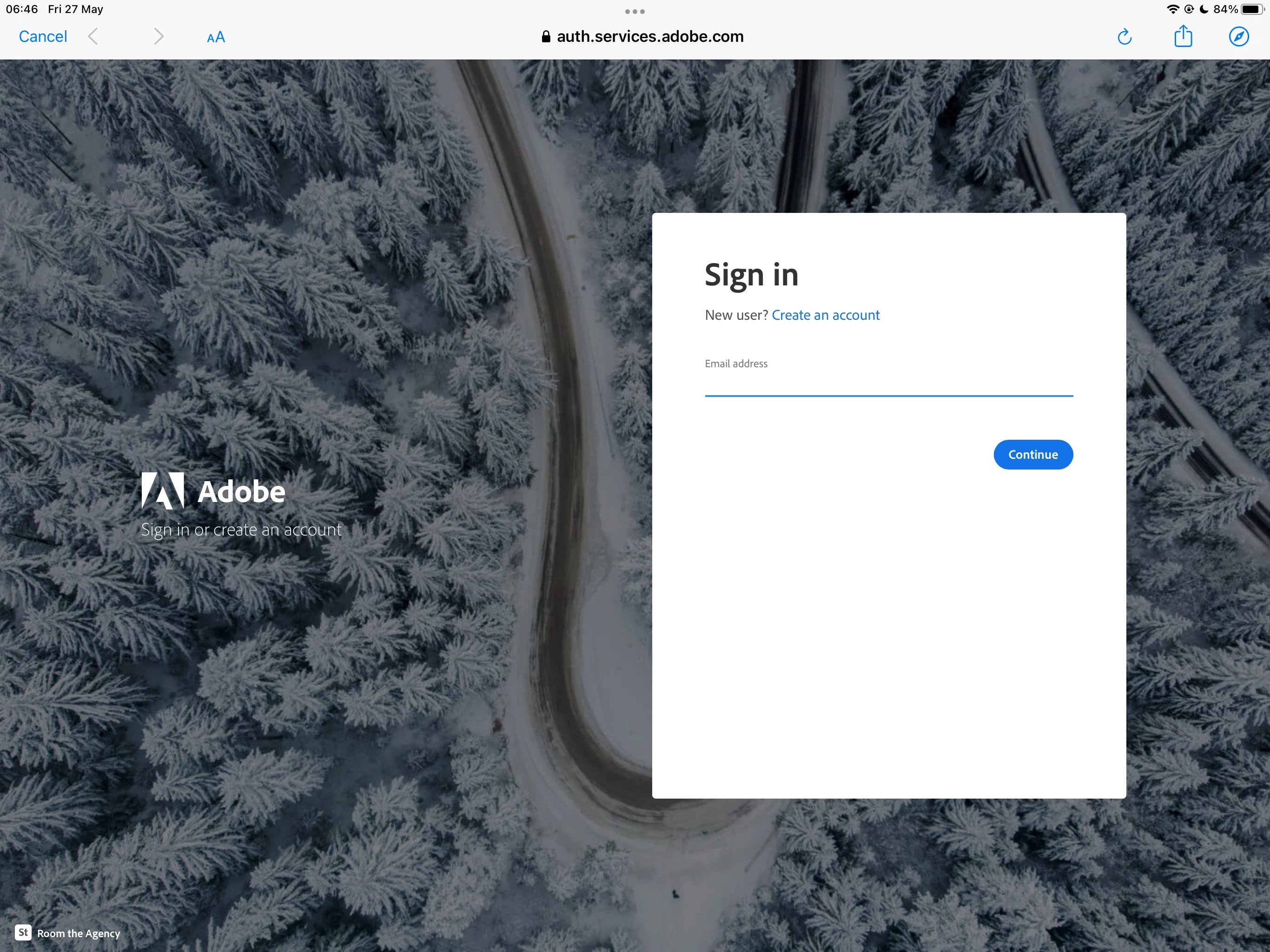 The Adobe Express ipadOS app login area does not display the keyboard or provide an option to show it.
