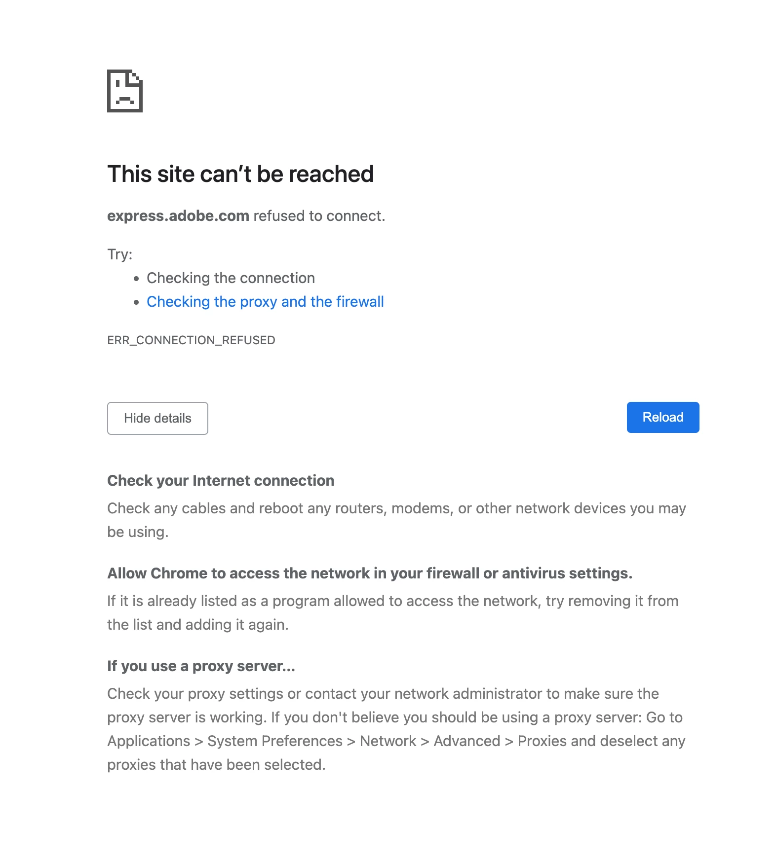 Cannot access Adobe Express