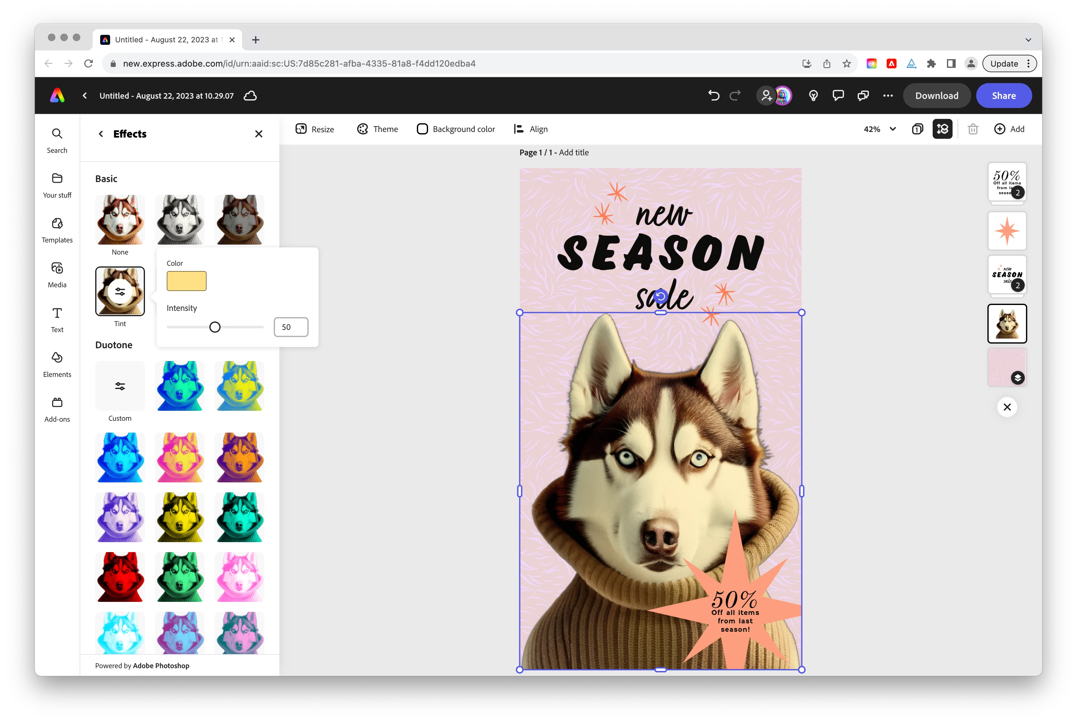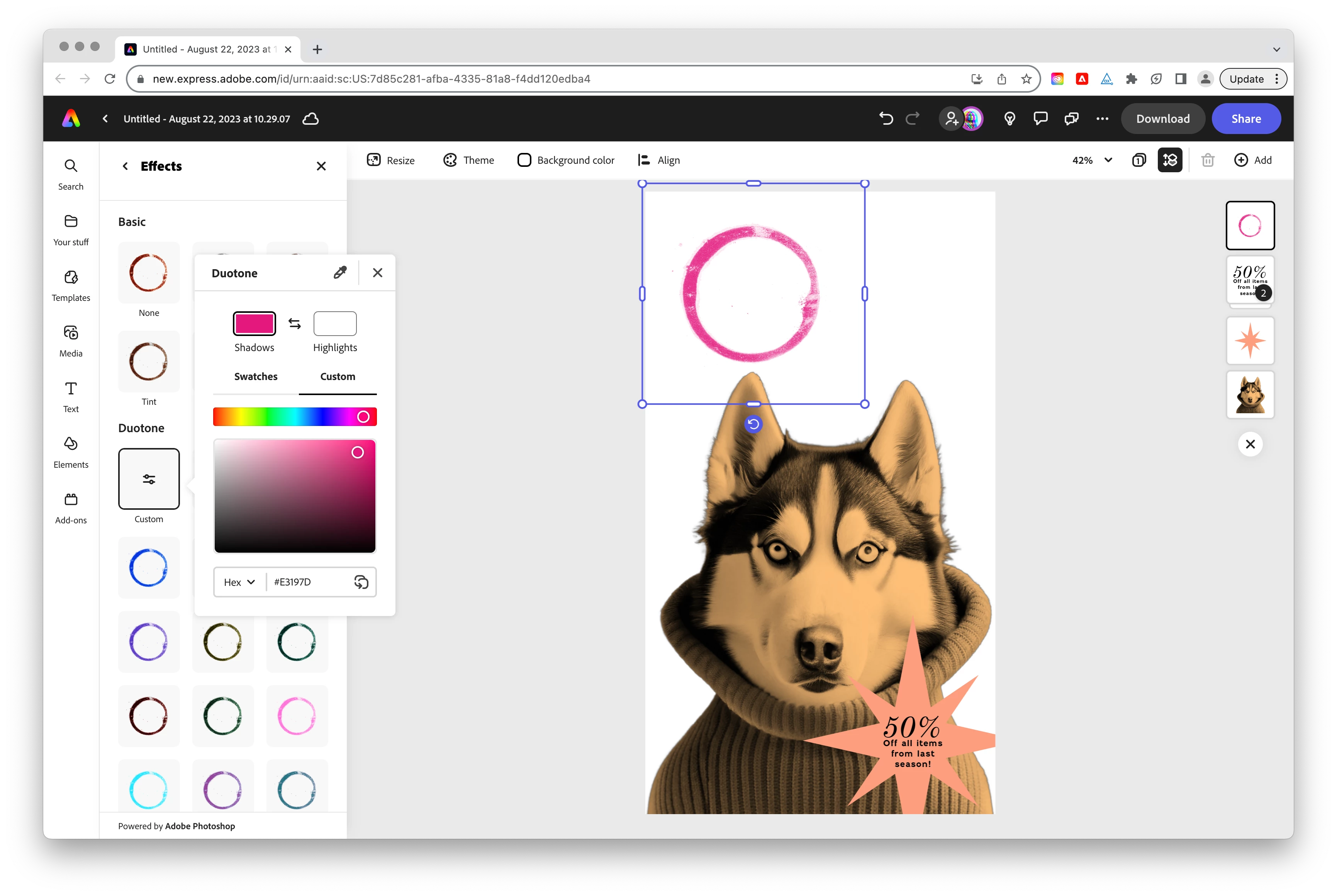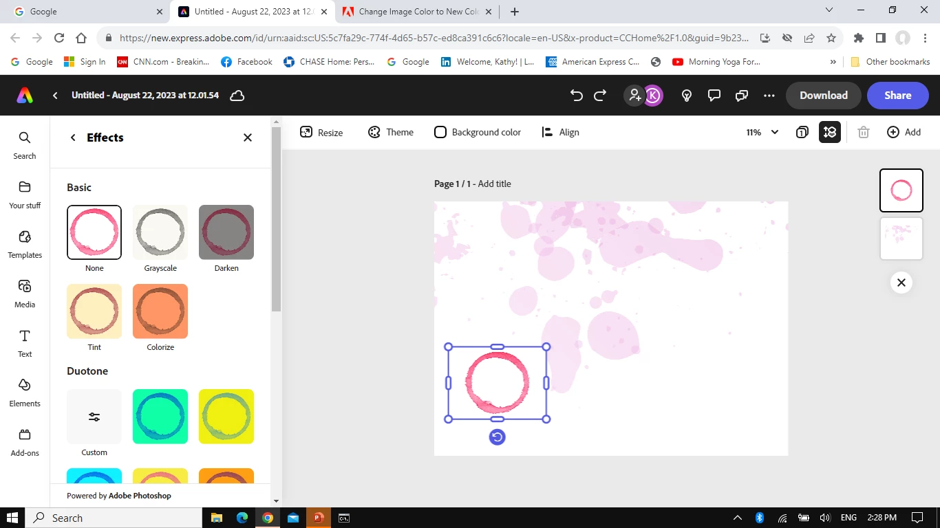 1. If it is a photo/illustration/background/multicolor graphic, after selecting it choose Effects in the Image panel, and choose any of the following: