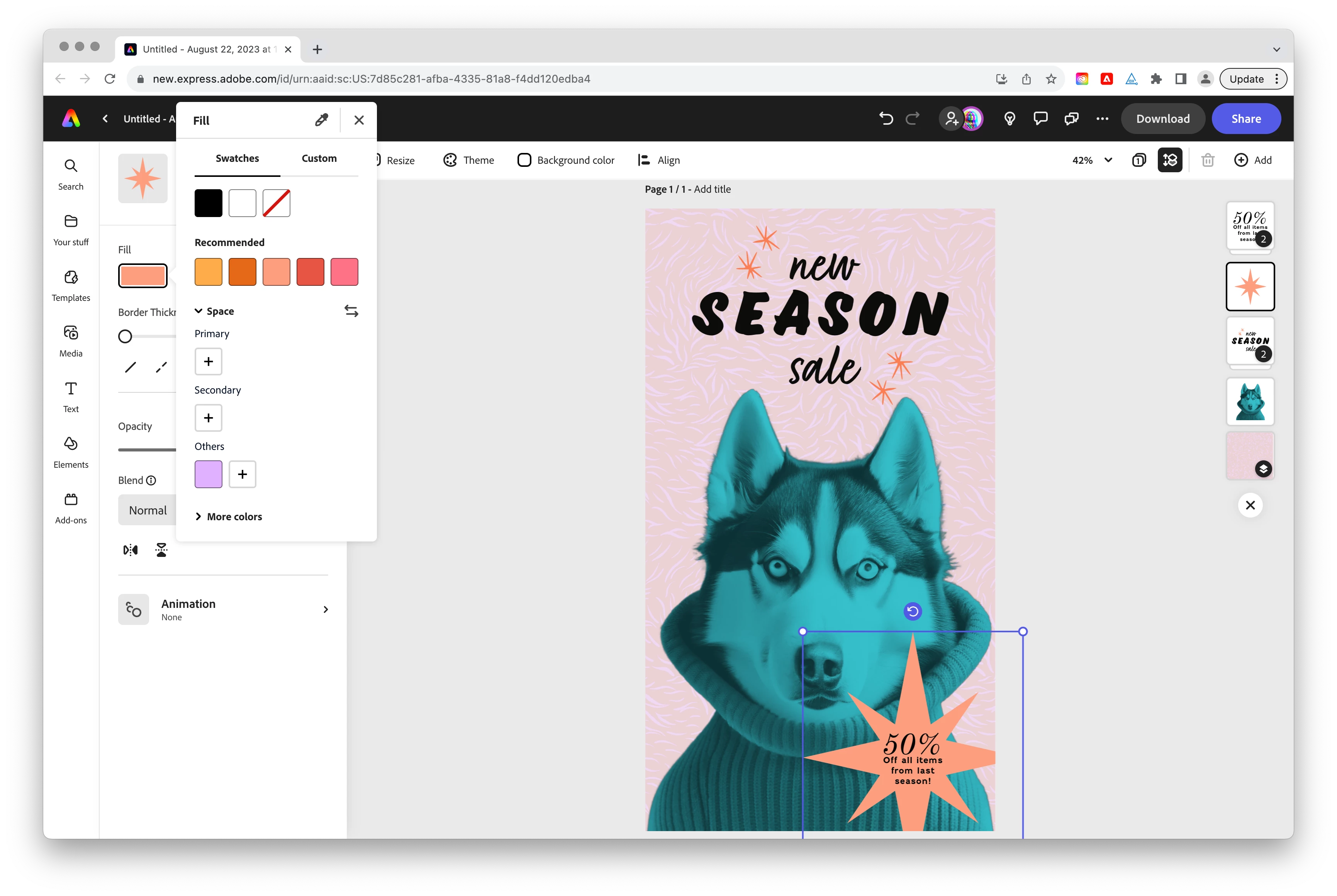 I am just trying to change the color of an image to a new color in Adobe Express. I don't see a color button but under Adjustments, I can only change saturation and hues. I want to drop a color in from existing layer. I am missng something? Thank you for any help.