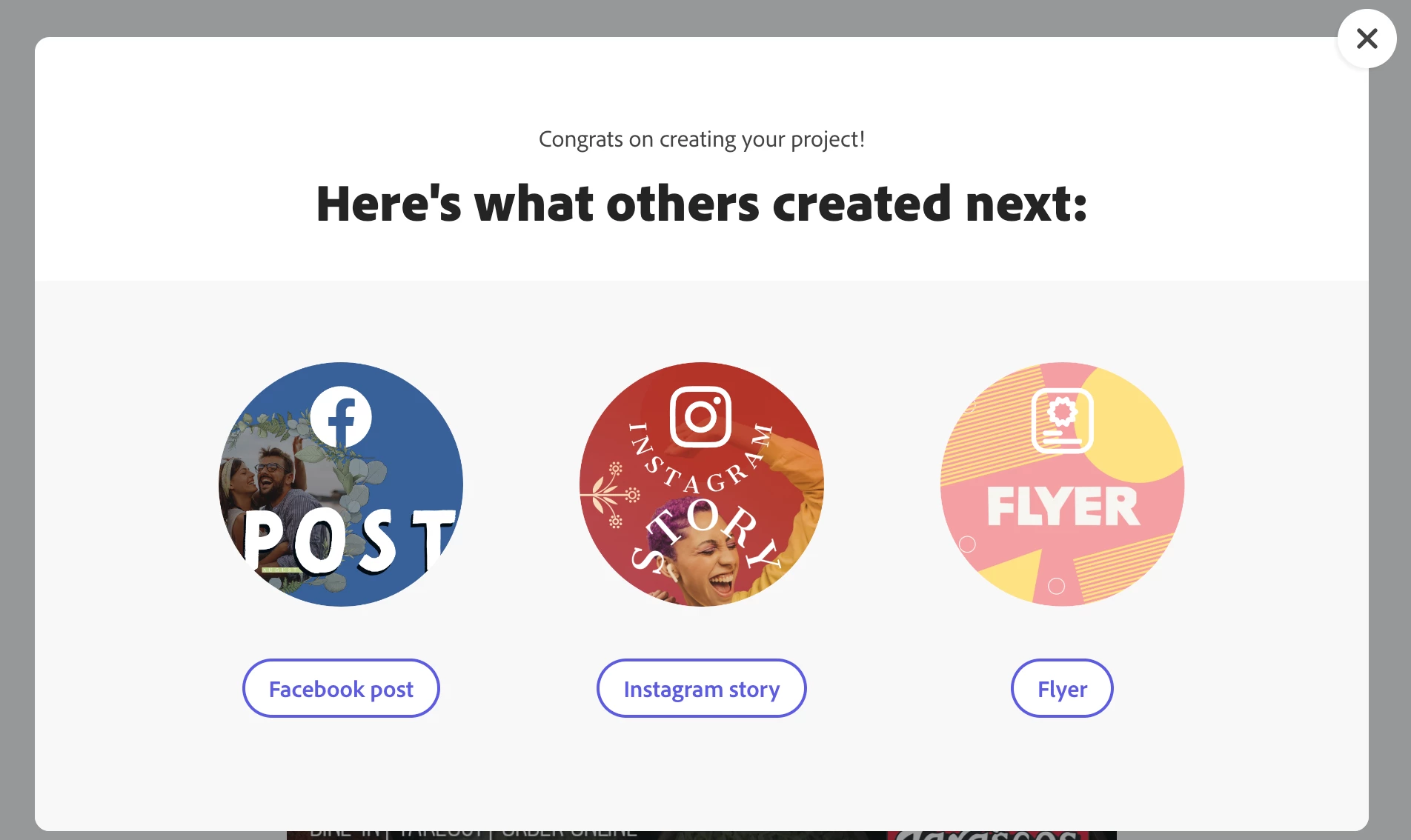 "Congrats on creating your project! Here's what others created next:"