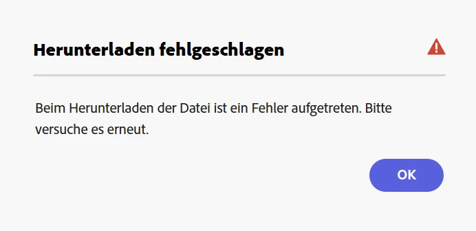 Ich möchte mein fertig geschnittenes Video herunterladen. Leider kommt immer wieder die gleiche Fehlermeldung. Was soll ich tun?