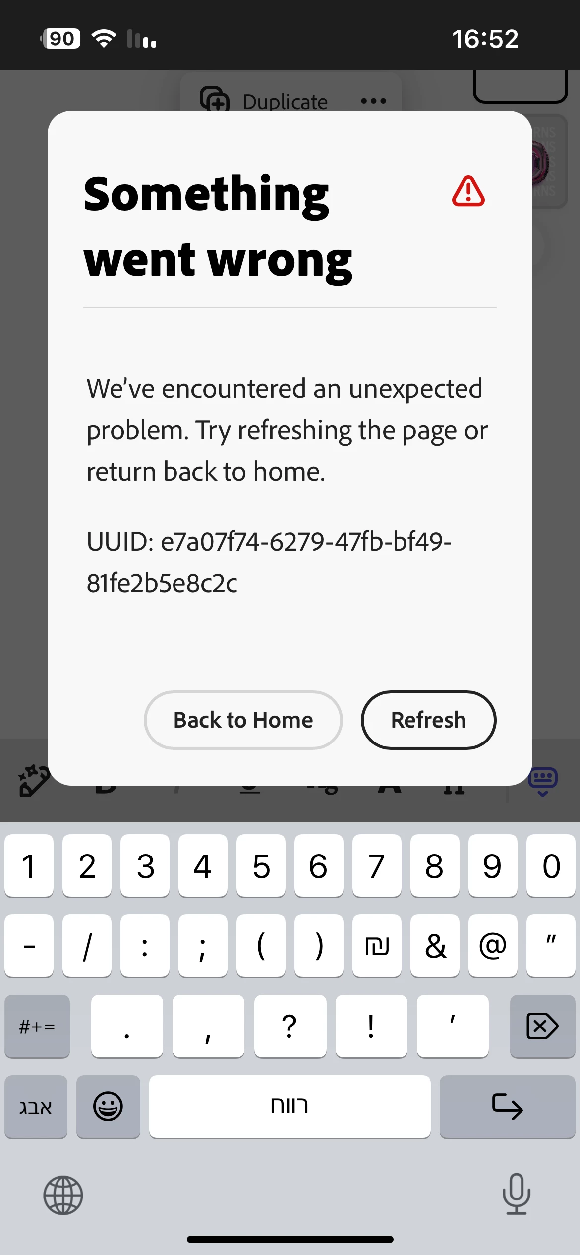 Hi, I would appreciate some help if anyone knows. I'm trying to edit something in the Adobe Express application and after I enter one of the templates, it gives me the error message that appears in the picture I attached. Does anyone know what the problem is and how I can fix it? I have a subscription from the college I'm attending and I checked that their plan also includes access to Adobe Express, so I can't figure out what the problem is.