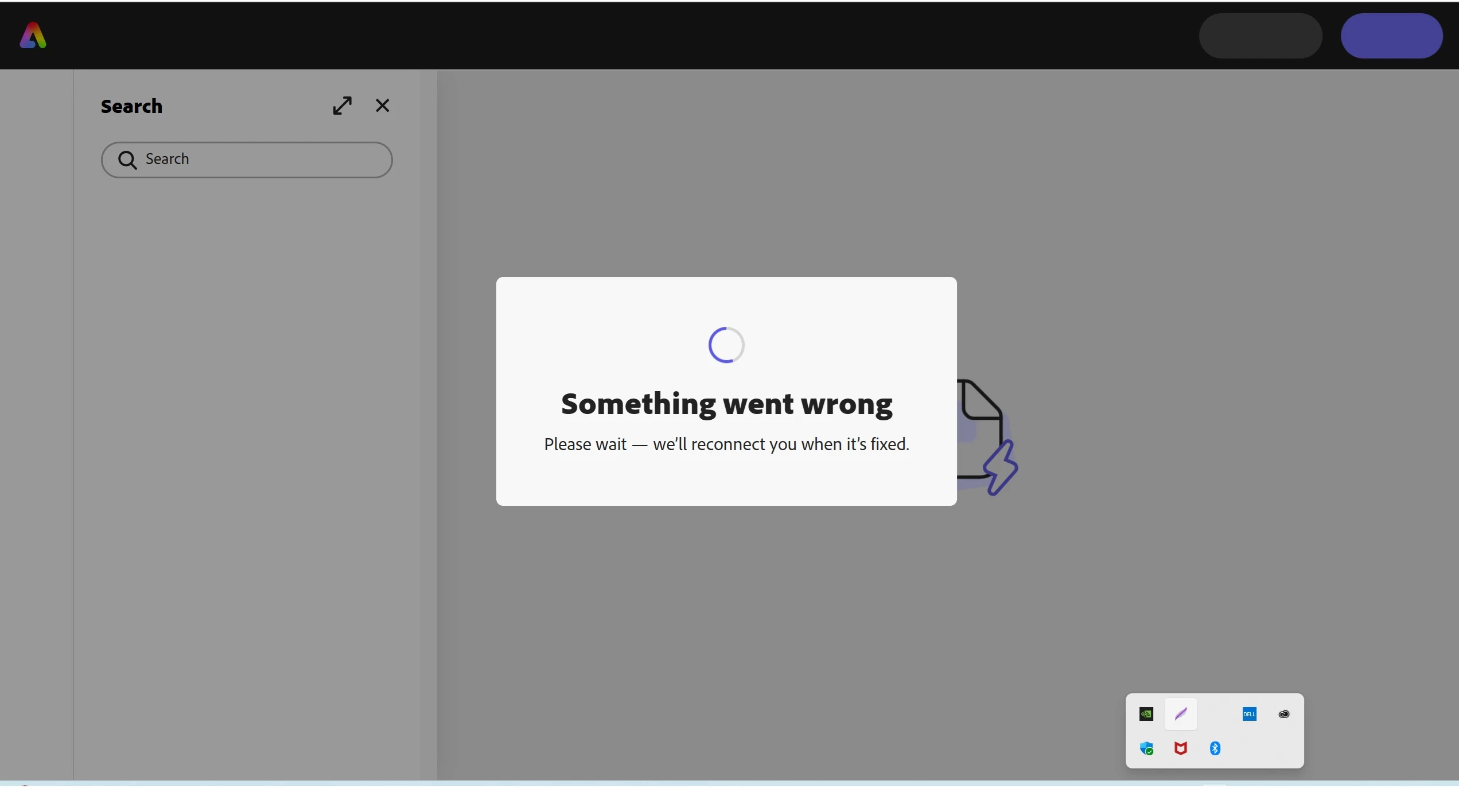 "Error"Something went wrong" while running Adobe express