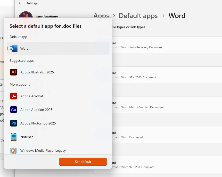 I have recently purchased Adobe Express (I had an old Adobe Distiller program) and when I go into File Explorer I have noticed that all my files especially docx are now showing as Adobe and will not open. I comes up with a message saying it is not supported and to go to the original source document and print and save as a pdf but this is the original source doucment?