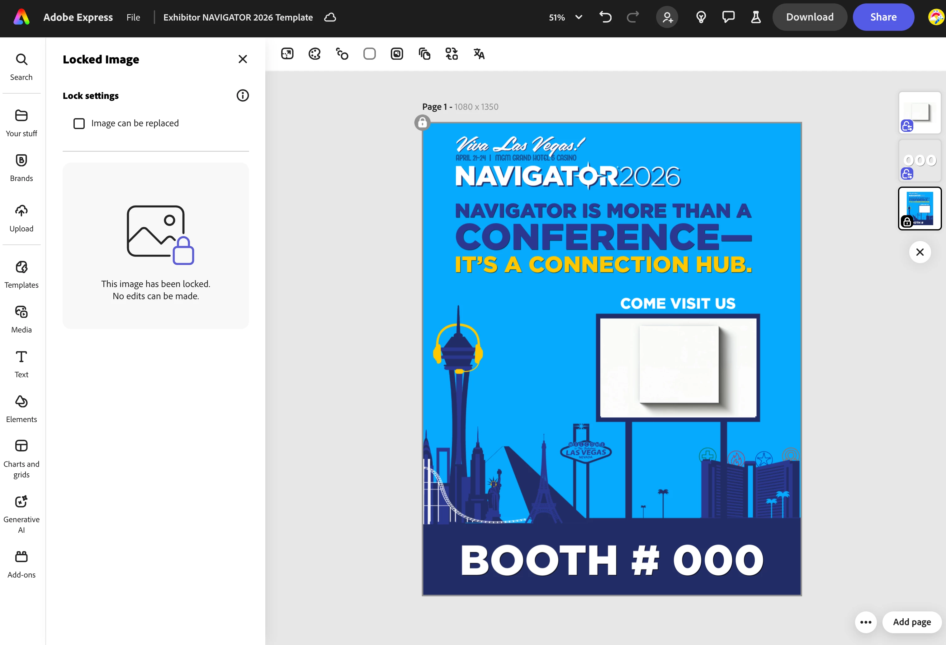 - When I send the template link, users often see the layers as locked and can’t easily edit the booth number. Is there a way to lock most design elements while keeping just specific text or image fields editable?