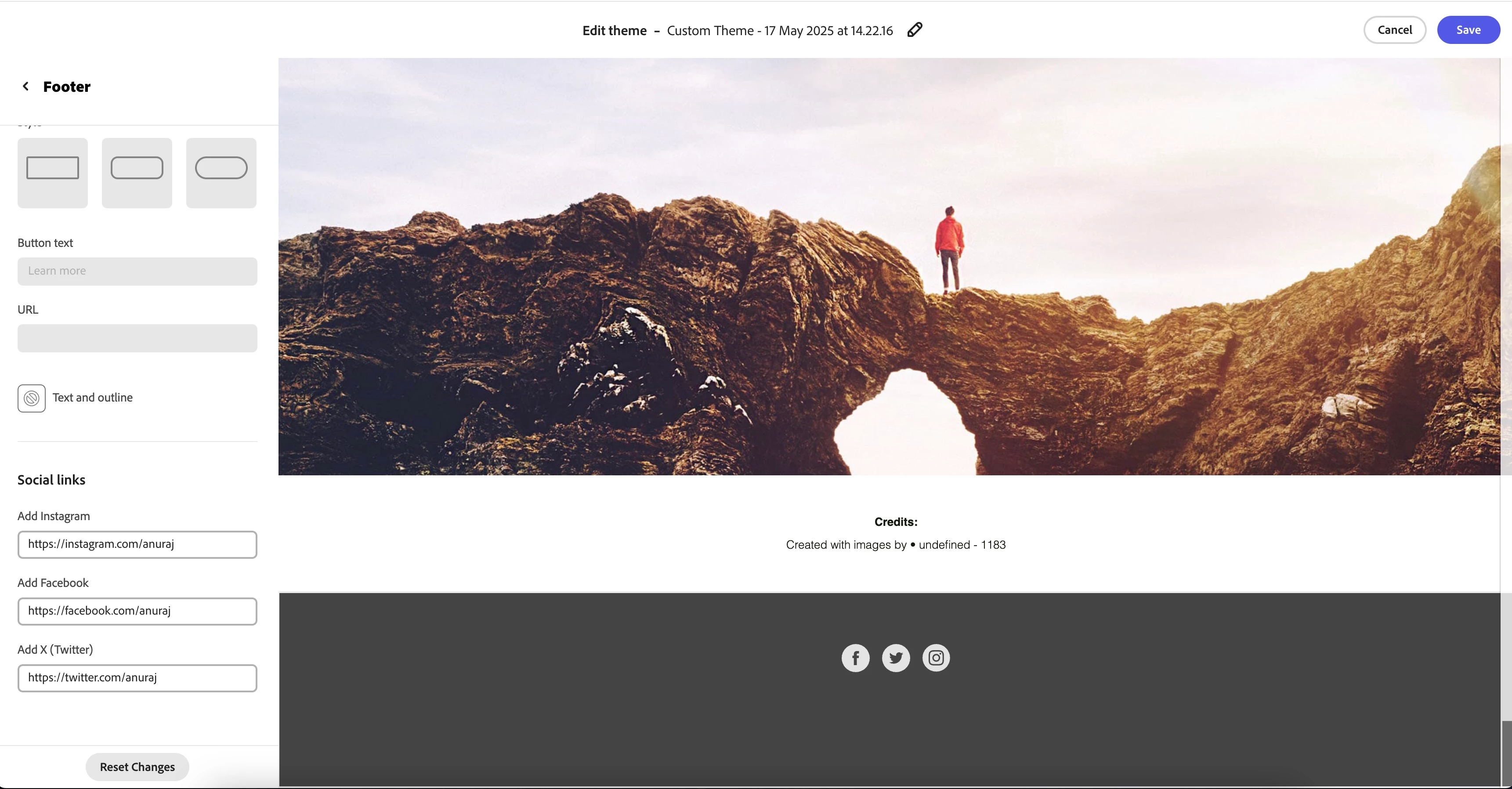 How can I add my social media information to my Adobe Express Webpage?