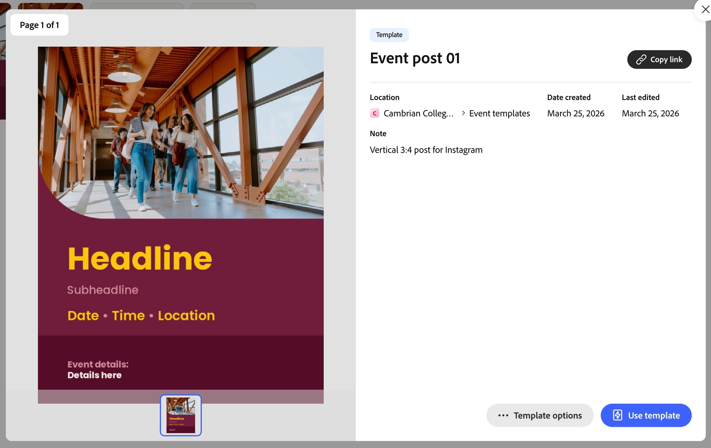 Since templates were moved from Brands to Projects, now whenever someone clicks on “Use template” the file that is generated from that is auto saved in the shared project folder for everyone to see instead of into ‘Your stuff’ like it used to do when templates were part of Brands. Would like to have the ability to change the location of the auto save file when using a template.