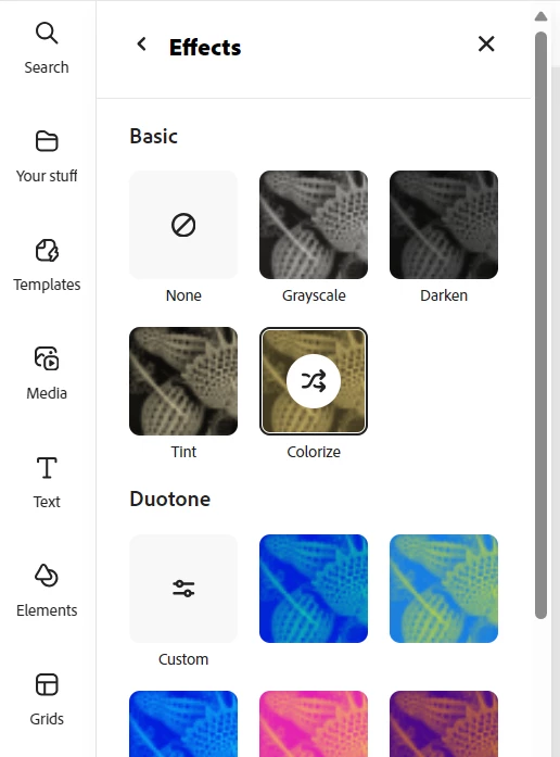 I am trying to colorize an image under the basic setting but it doesn't allow me to select the Pantone I would like to use. It only lets me click through preset colors which don't work for me.