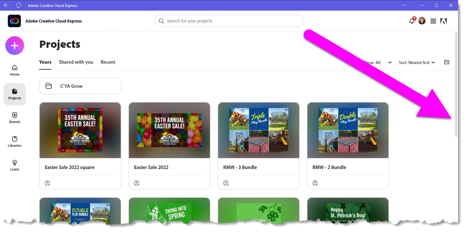I'm using the PC Desktop version and it only loads 16 of my projects. How do I see more?