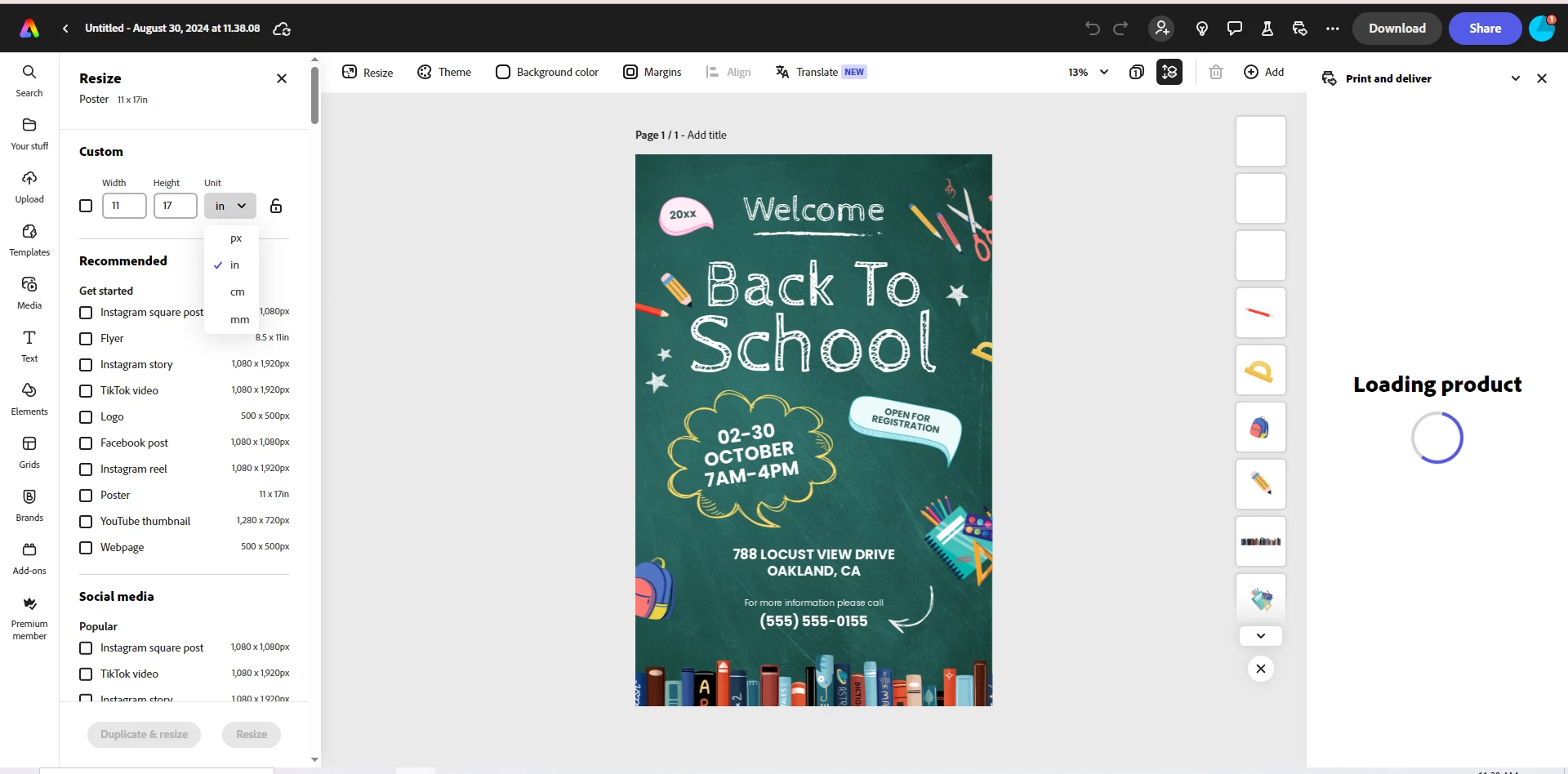 Our teachers want students to create posters for printing but the document sizes are in inches or "letter". How can we set default units to metric or paper sizes such as A4 or A3?