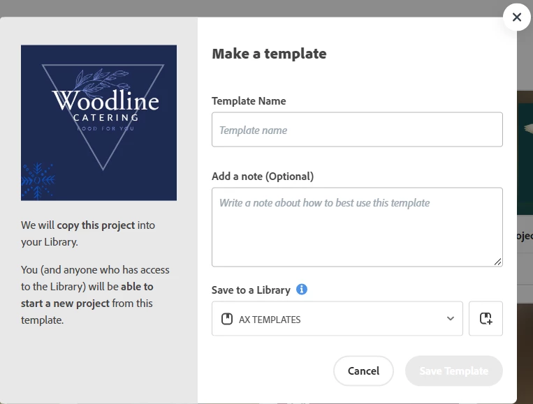 I've created projects in Express that do not show up in my libraries. How can I get them to my libraries OR is there a way to copy the template and send it to libraries?