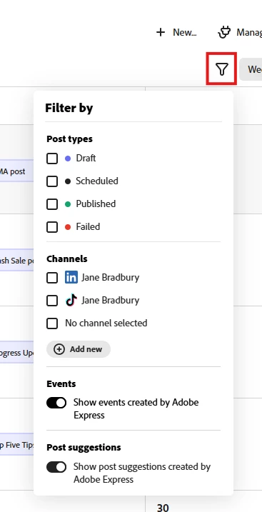 Actually you can! In the Scheduler window look for the funnel (that's what I call it!). When you click it you can see at the bottom buttons ot turn on or off the calendar events.
