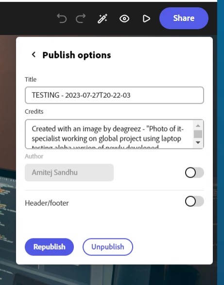 Hi everyone, nice to meet you all. I have a couple questions, quite new to Adobe Express. I have made a webpage, published it, created a link, shared it out etc... now I want to unpublish it. If I hover over the webpage thumbnail in 'my stuff' there is no unpublish option. How else can I unpublish my webpage please?