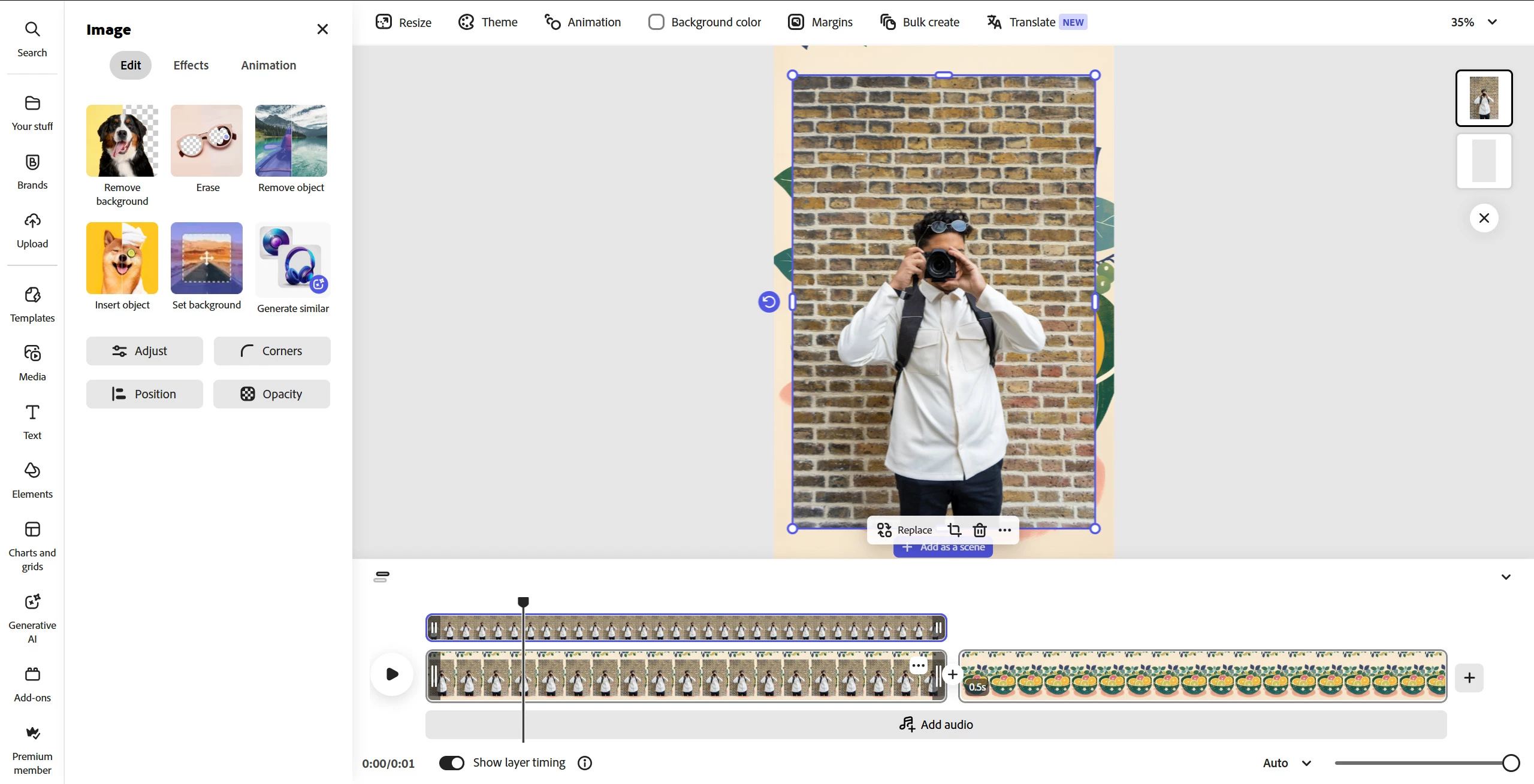 This even happens when I try to add images provided by Adobe Stock (using the "Media" panel on Adobe Express). The images never fill the "canvas," for lack of a better term.